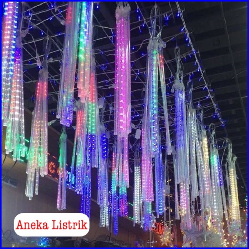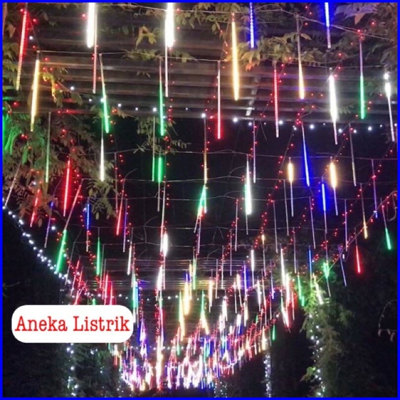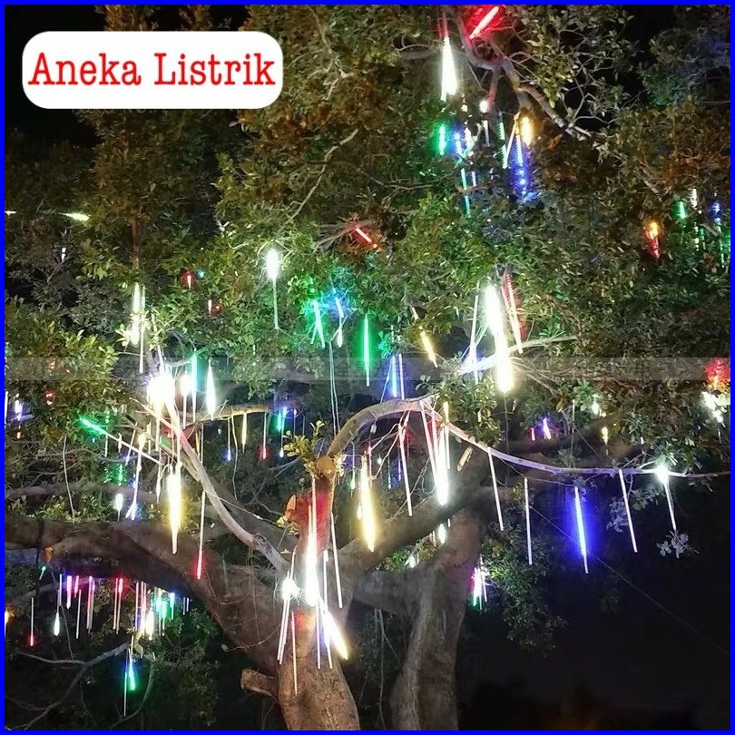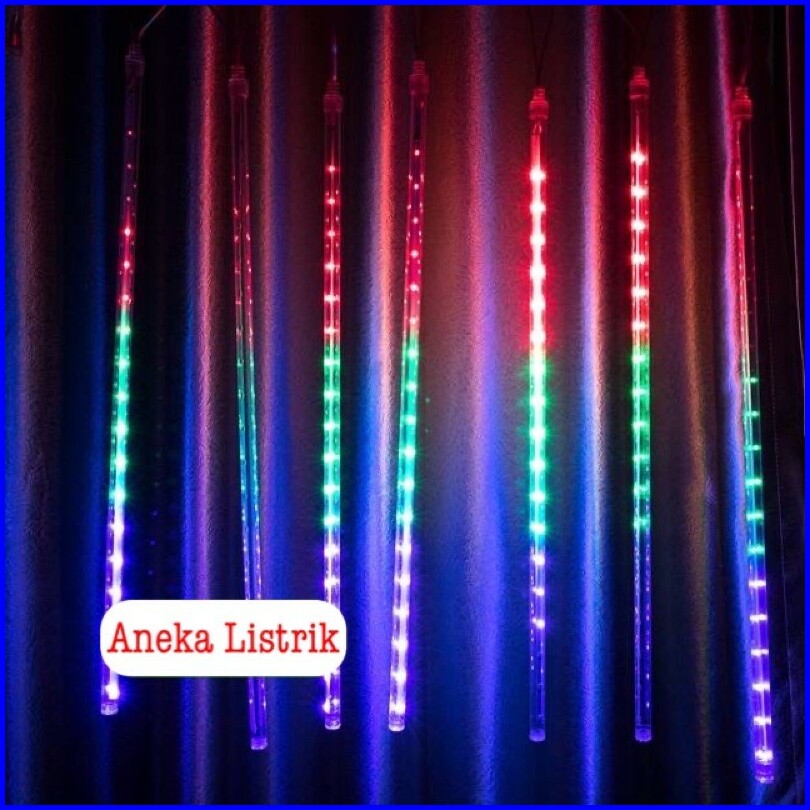 Lampu Meteor Led Hujan 7warna 50cm Rgb 1set 10batang Full Colour Jatuh Rain Snow Taman Hias