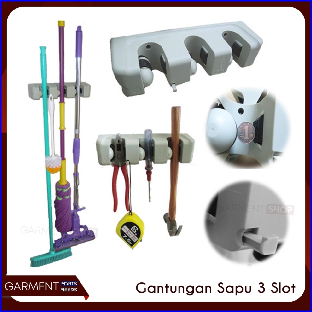 Gantungan Sapu Pel 3 Slot Hook Magic Mop Holder