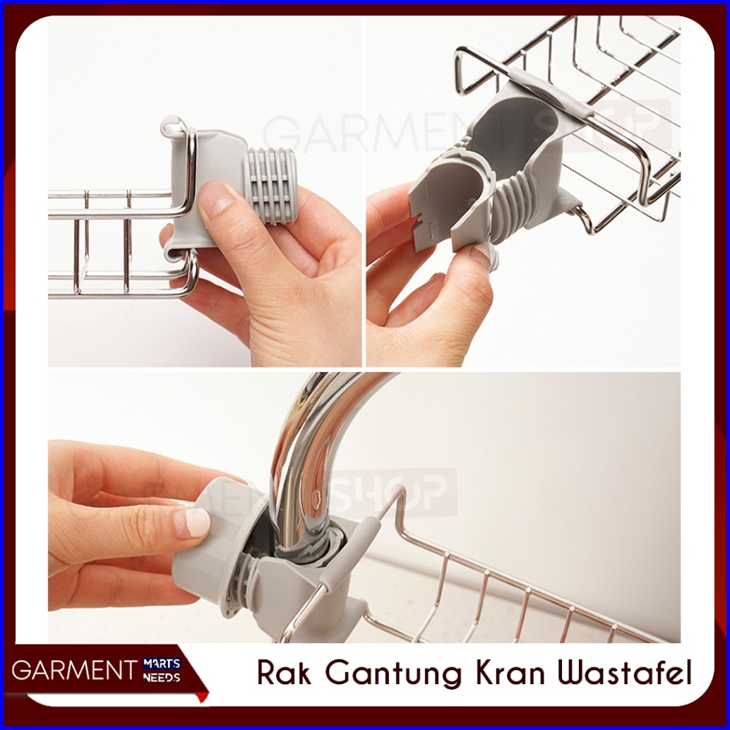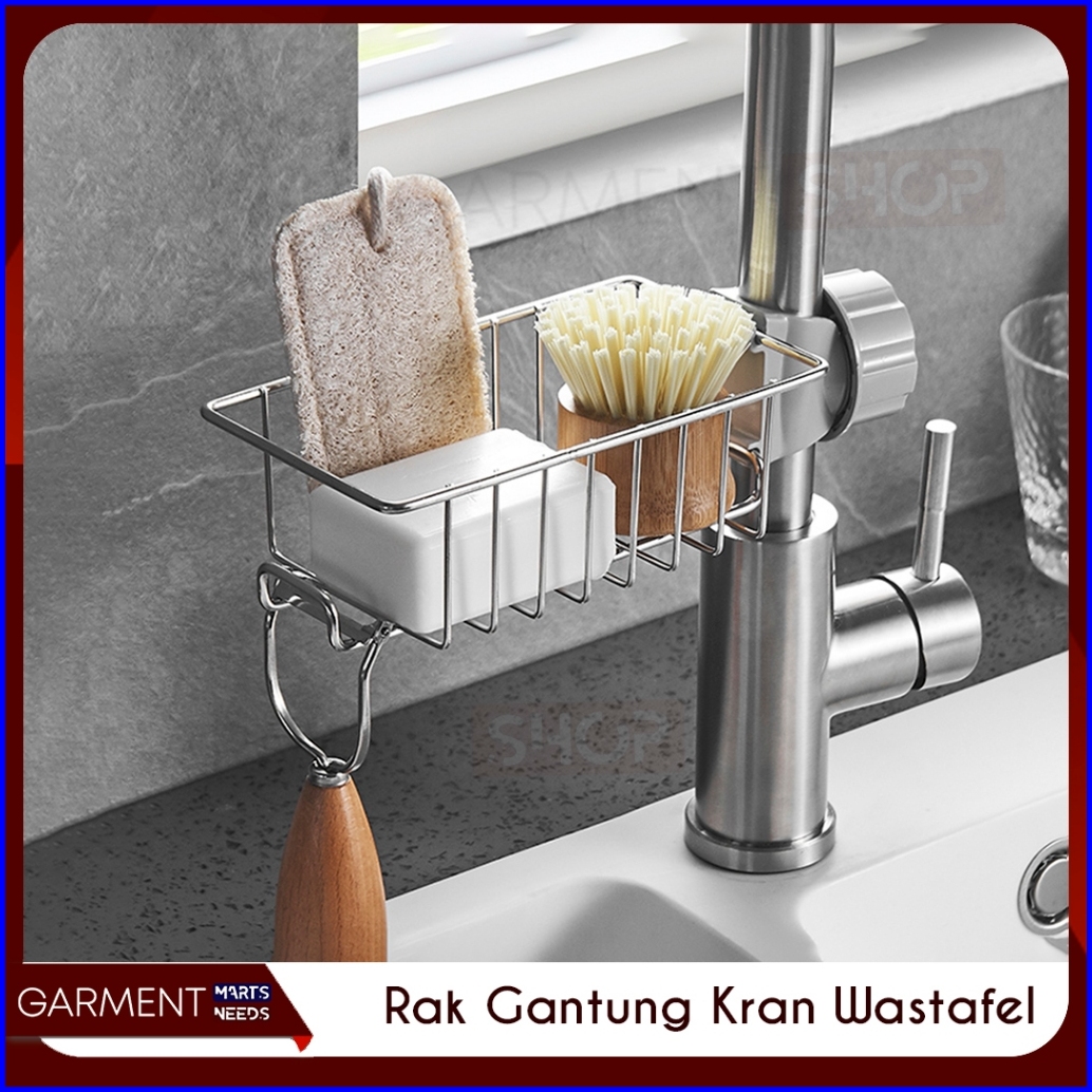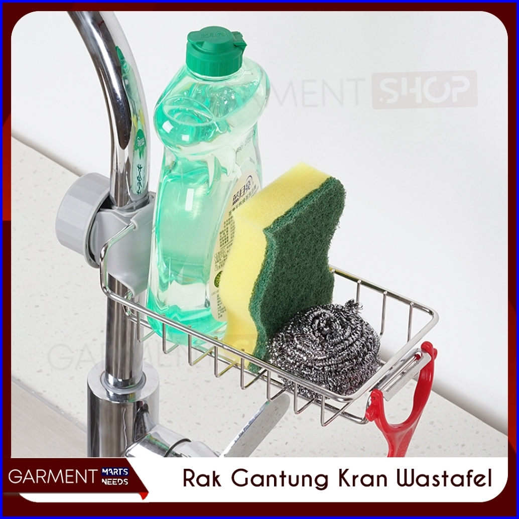 Rak Wastafel Gantungan Kran Tempat Spons Cuci Piring Bak Sabun Sink Air Keran Stainless Anti Karat
