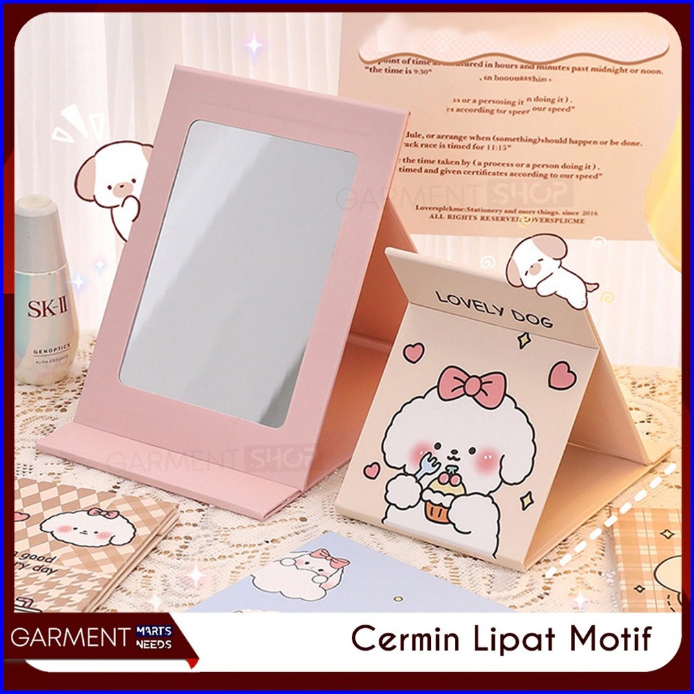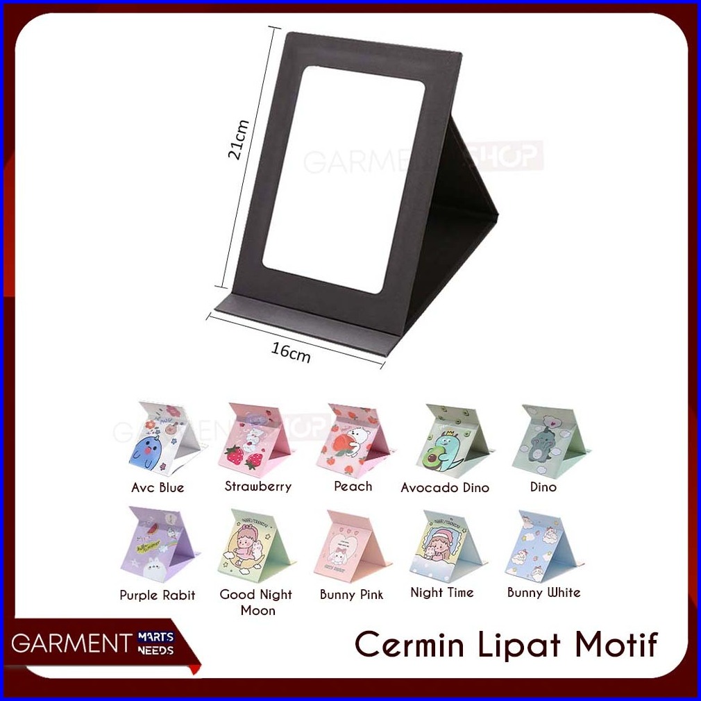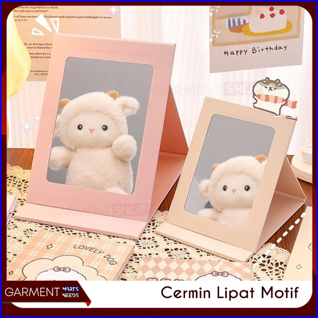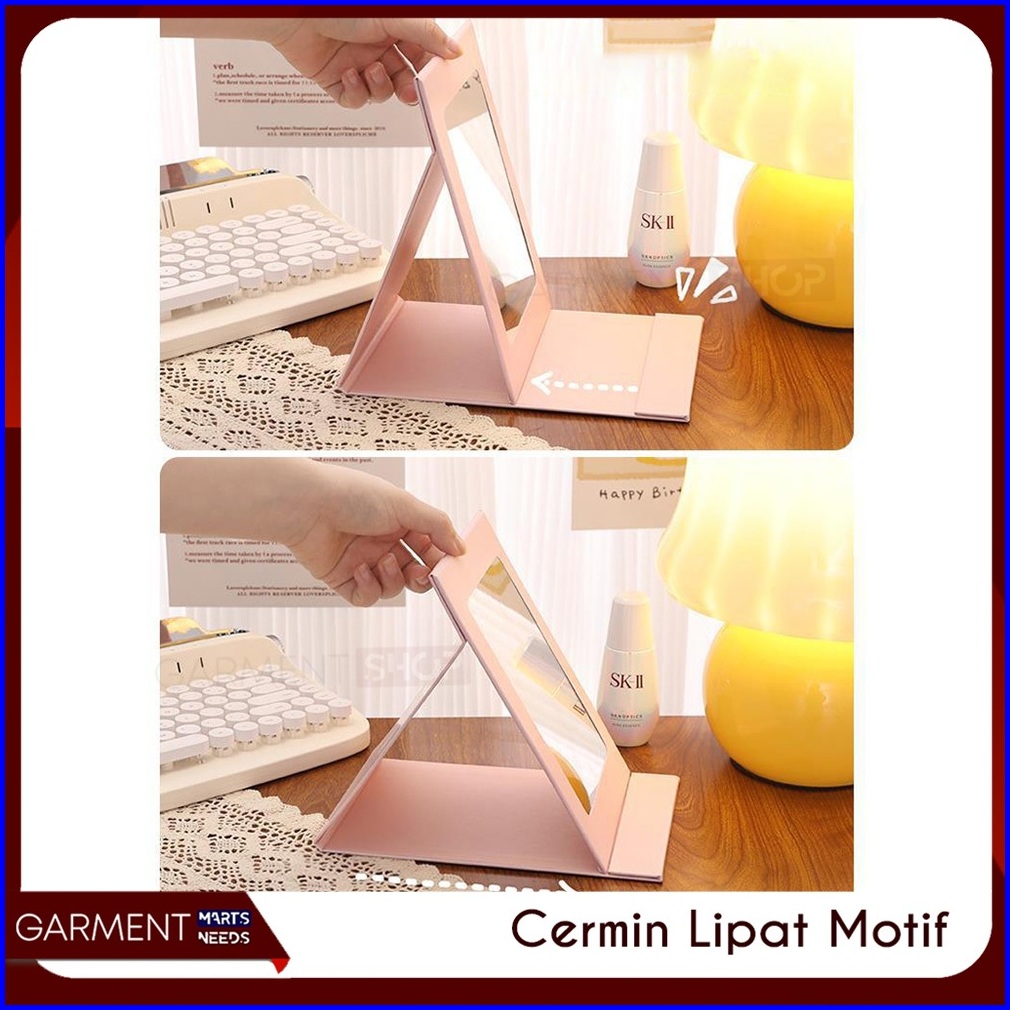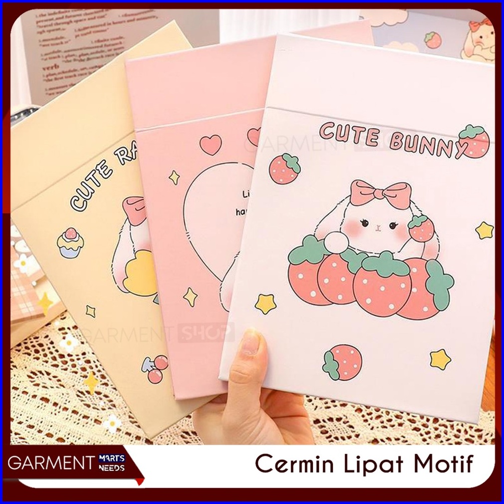 Cermin Lipat Motif Karakter Lucu Rias Portable Beauty Mirror Model Kotak Buku Kaca Tebal Premium