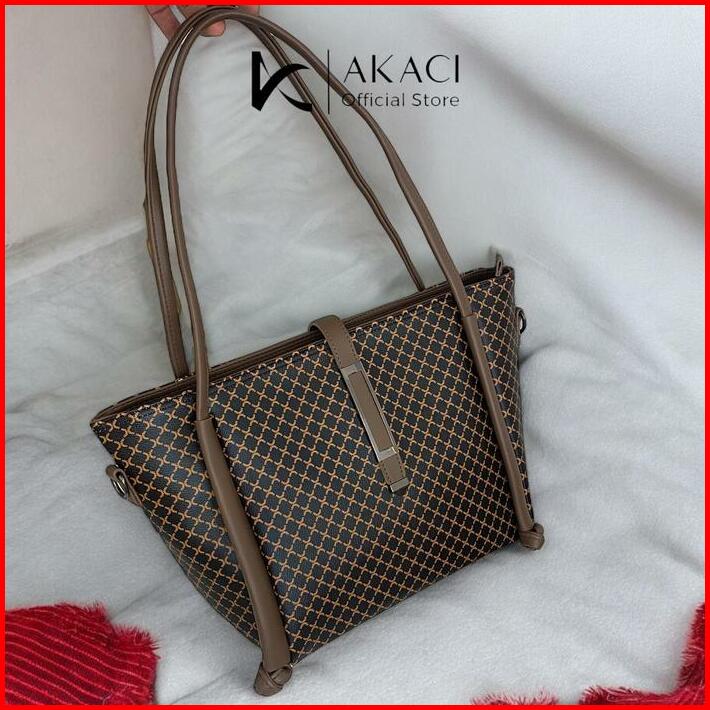 Tas Bahu Tote Bag Donna Tote Akaci 09-8305 Bahan Pvc Sintetis 1 Ruang Muat Binder Buku Kuliah Kerja Kantor Ibu Murah Ber