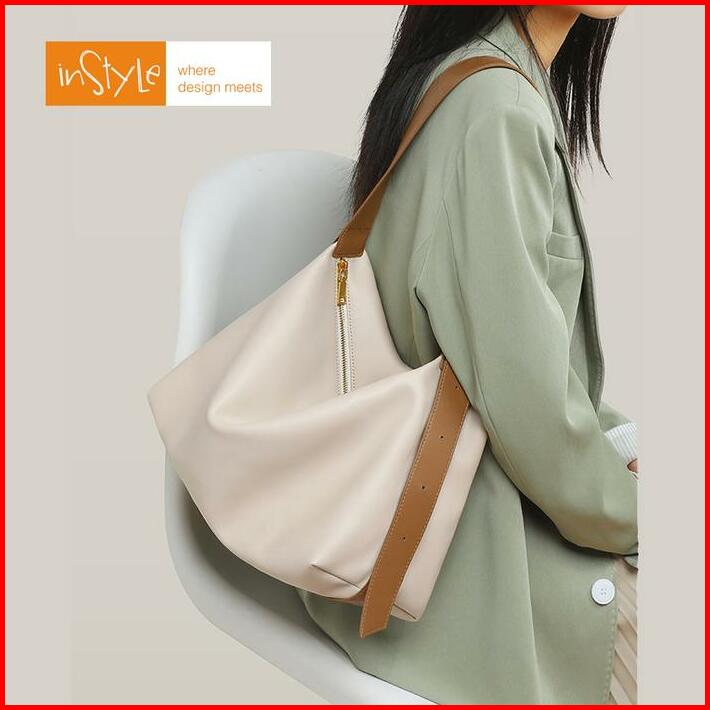 Tas Bahu Selempang Wanita Korean Vintage Style Shoulder Bag Besar Kulit Pu Leather Lembut T2-004