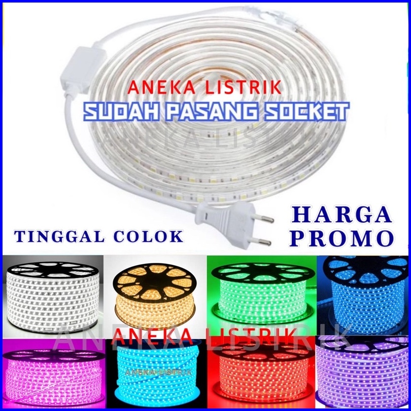 Paket Lampu Led Strip Selang 220v Lengkap Tinggal Colok 5050 Lampu Hias Cafe Led Strip Siap Pakai