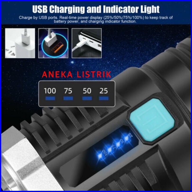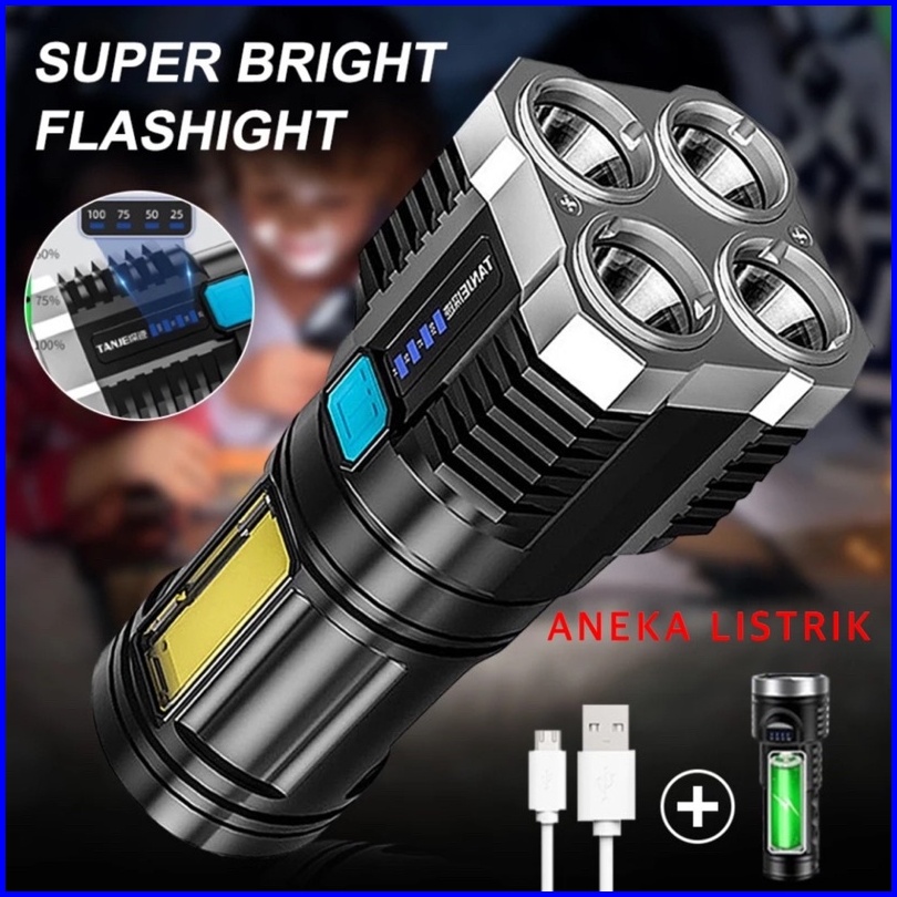Senter Led Cas Super Terang Jarak Jauh Cob 4 Mode 822 Emergency Usb Recharge Anti Air No 1