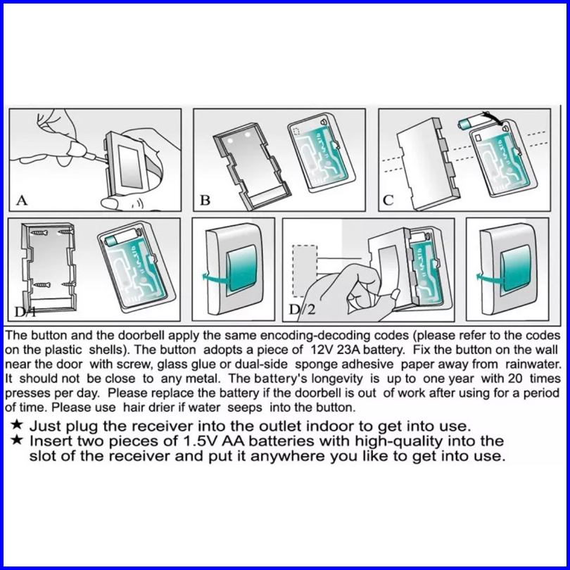 Bell Pintu Rumah 1 Remote Doorbell Wireless 32 Music Bel Pintu Rumah Tanpa Kabel Bel Pintu Ac Dc
