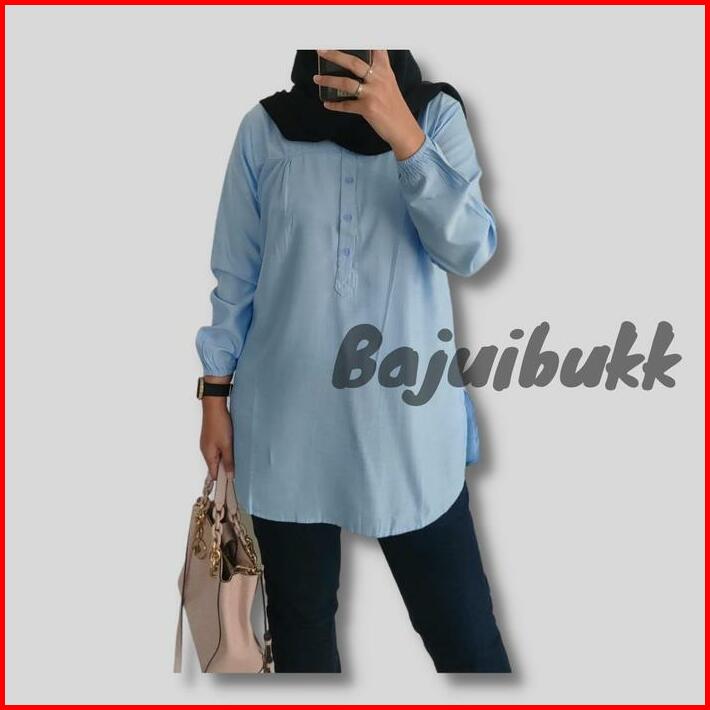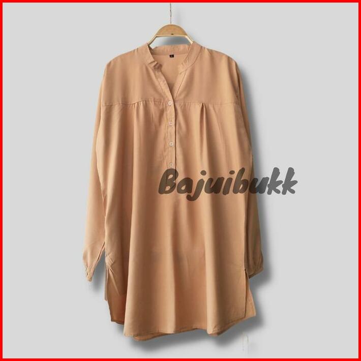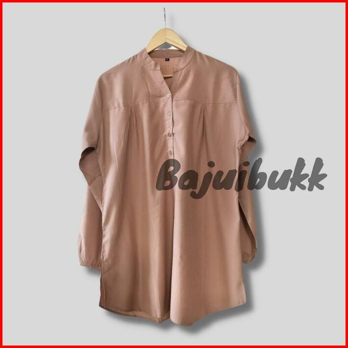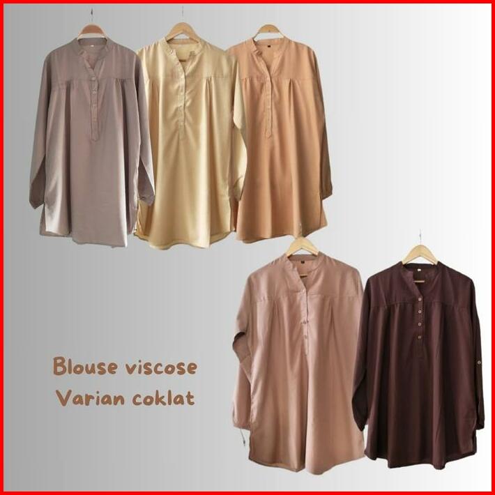 Blouse Baju Polos Viscose Coklat Coksu Cream Jumbo Kancing Lengan Karet Ld Up To 138cm Atasan Katun Nyaman Panjang Lembu
