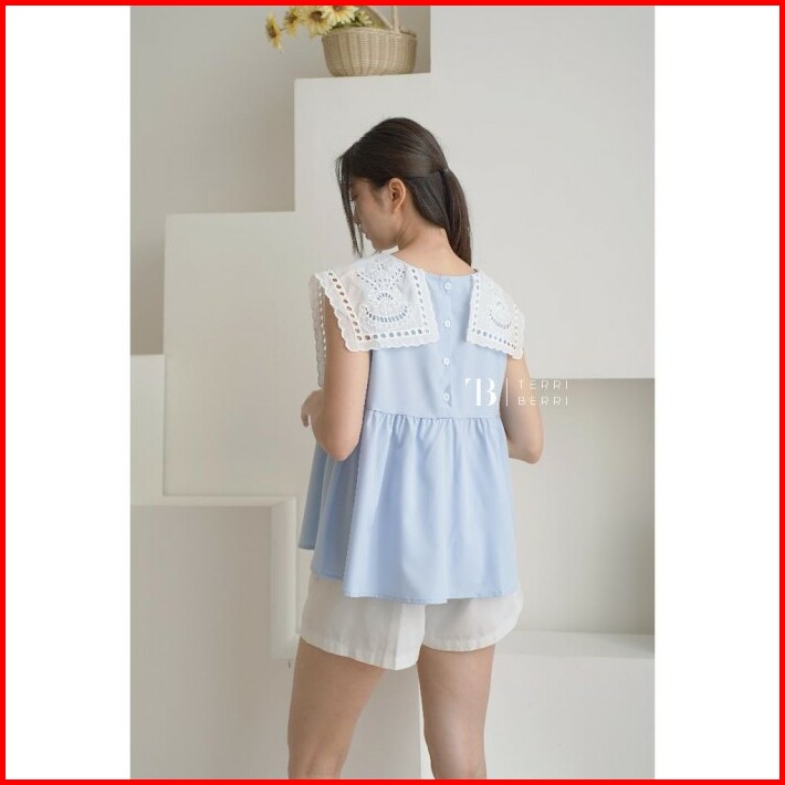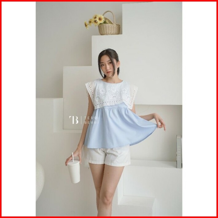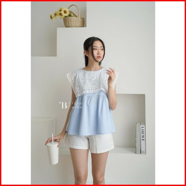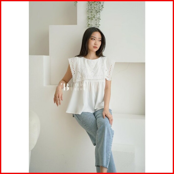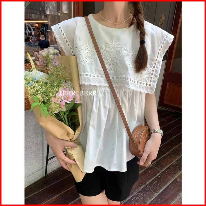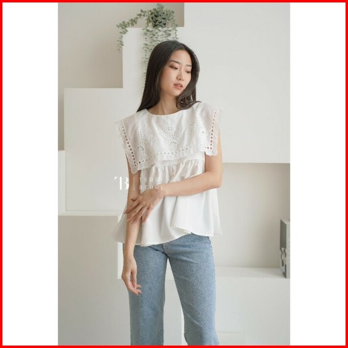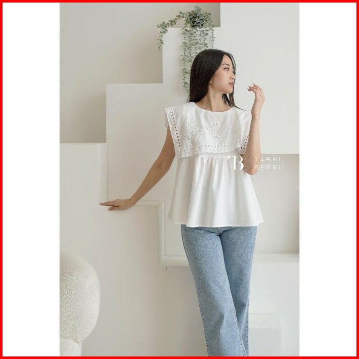 Go-eun Eyelet Blouse Atasan Katun Bolong Baju Katbol Wanita Korea Blus Katun Bordir Eyeled Premium