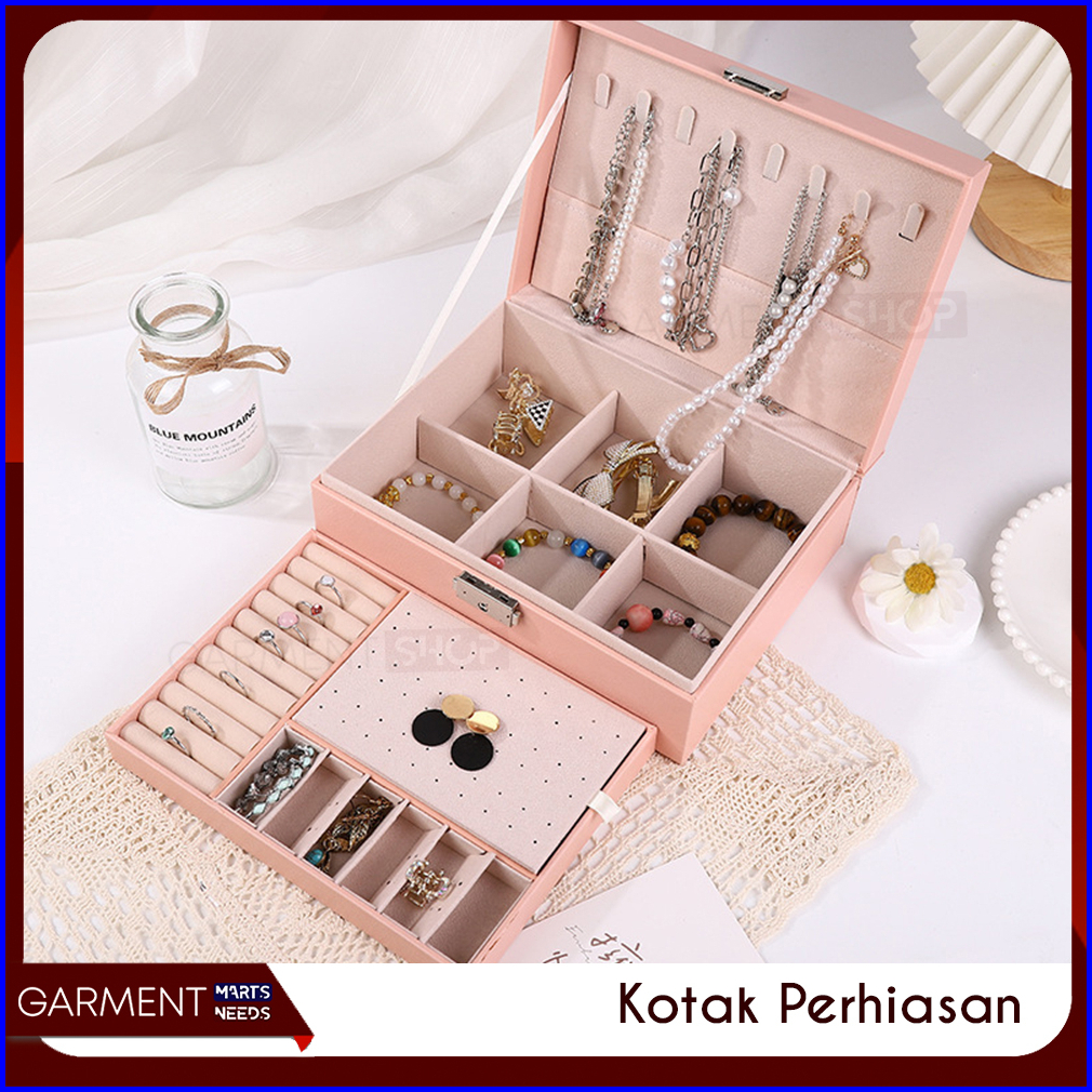 Kotak Penyimpanan Aksessoris Perhiasan Travel Jewelry Box Anting Bross Gelang Cincin Kalung Portable
