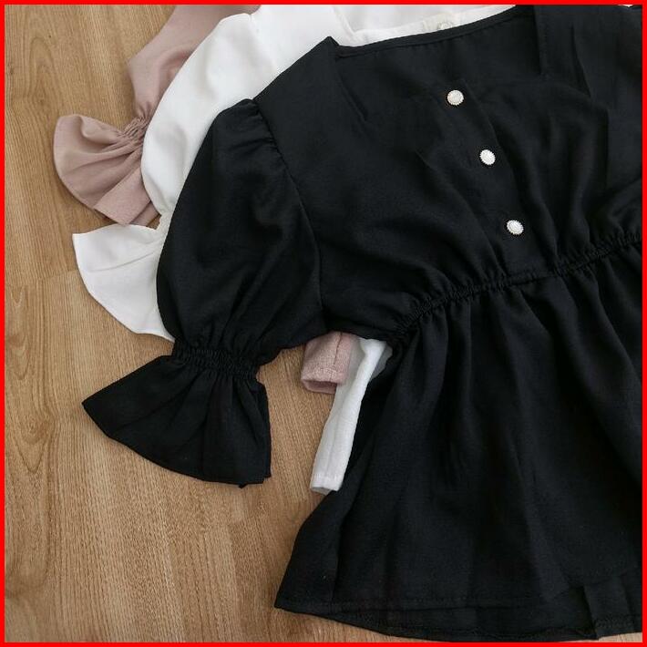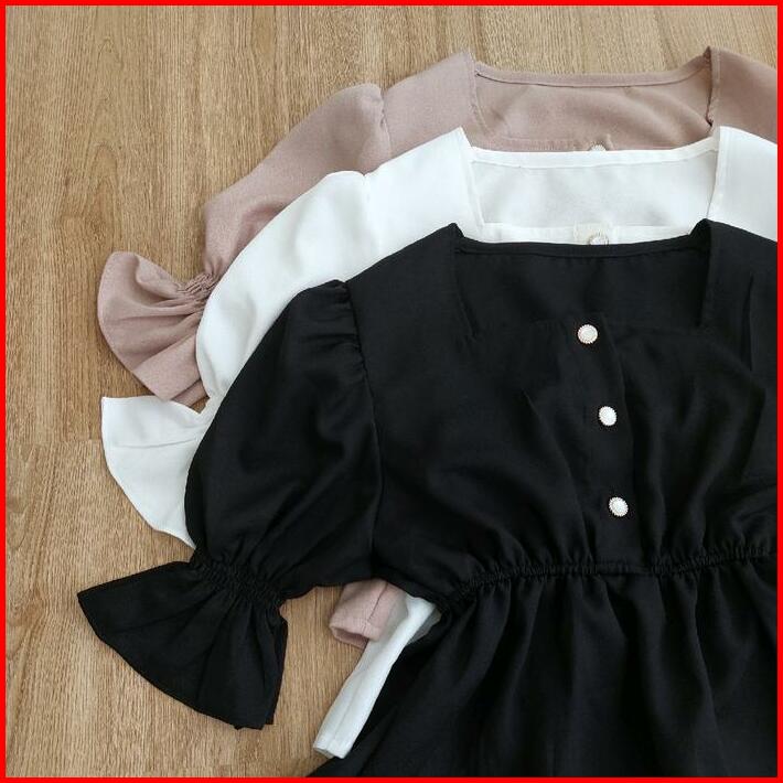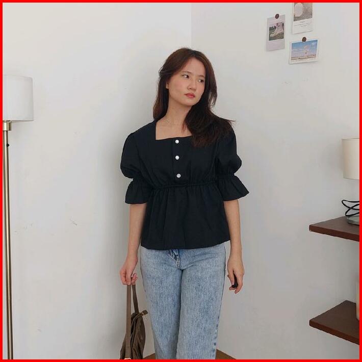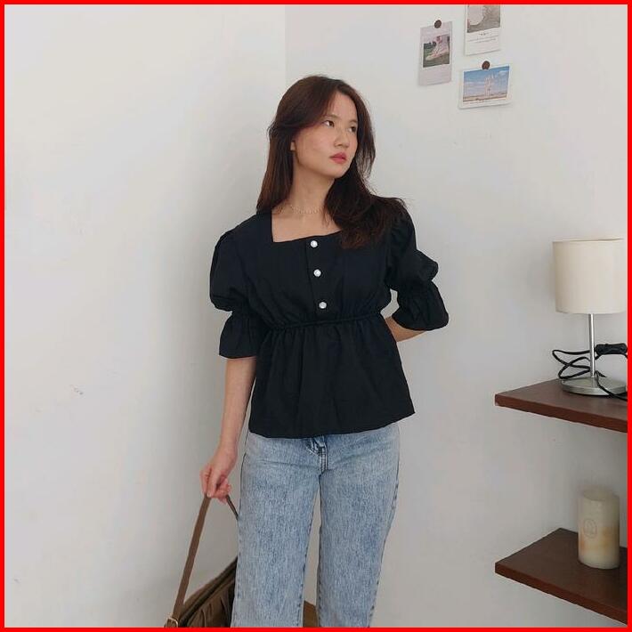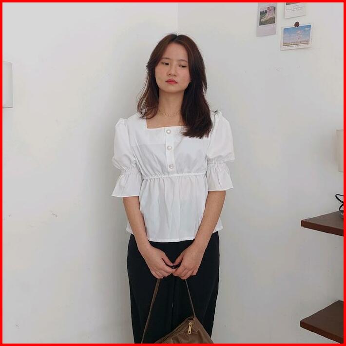 Nari Top Blouse Wanita Korea Elegan Puffy Sleeve Square Neck