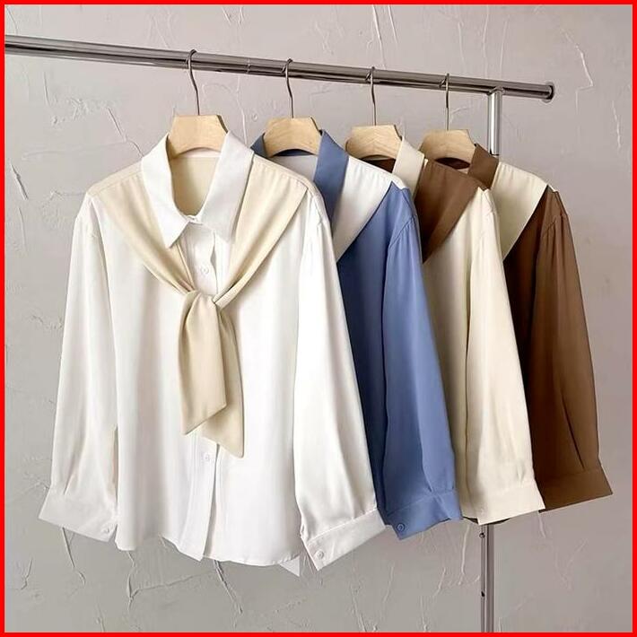 -syilenna Outfit Sakilla Top Atasan Blouse Shirt Kemeja Wanita Korea Style Kekinian Baju Wanita Trend Oversize Linen