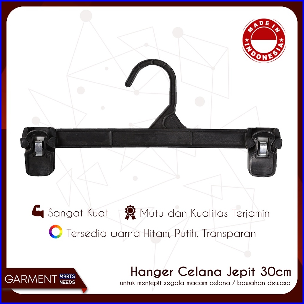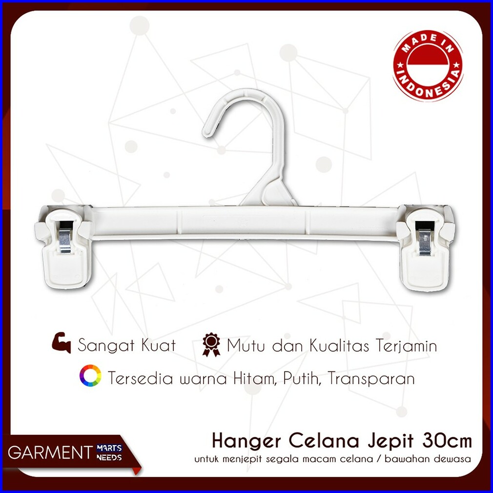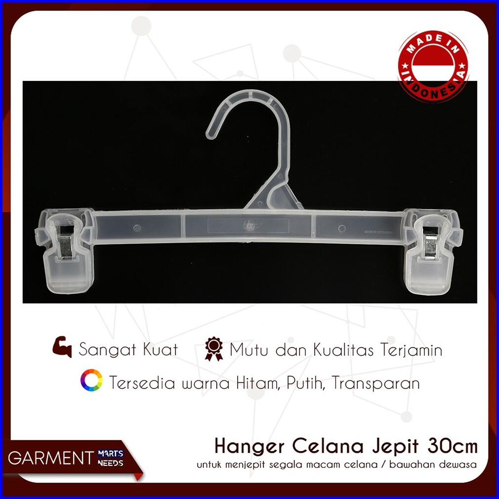 Hanger Jepit Dewasa 30cm Plastik Tebal Warna Putih Transparan