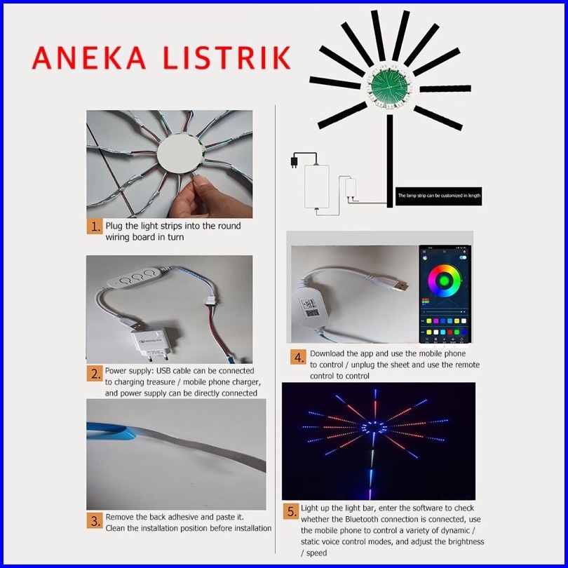Lampu Strip Led 5050 Rgb Bentuk Kembang Api Dengan Music Untuk Dekorasi Led 5050 Automatic Full Colour Sensor Music Bisa