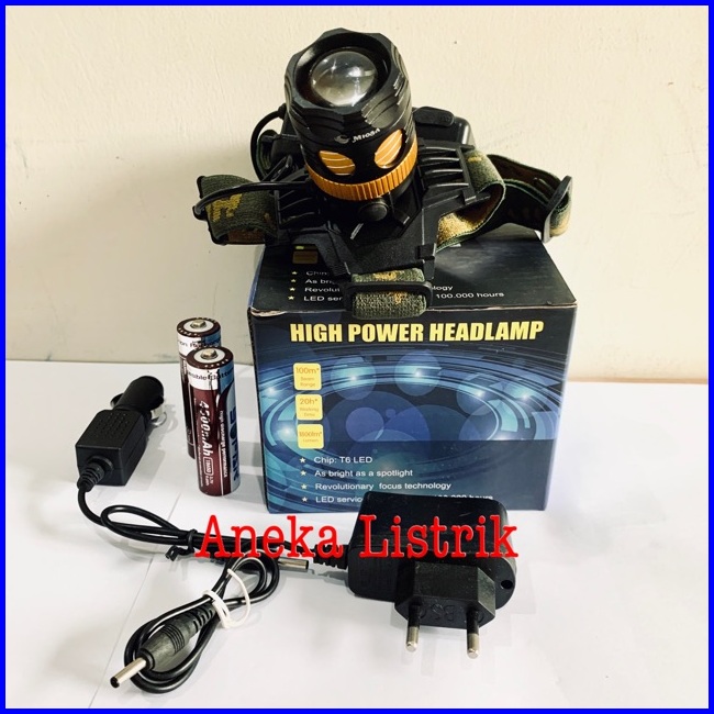 Senter Kepala Termurah Headlamp High Power T6 Taffled 2 Battery Charger