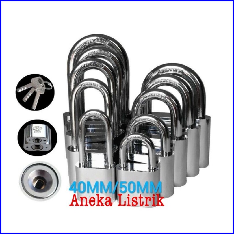 Gembok Putih Leher Pendek Panjang 40mm 50mm Hendso Chrome - Pintu Rumah Koper Gudang