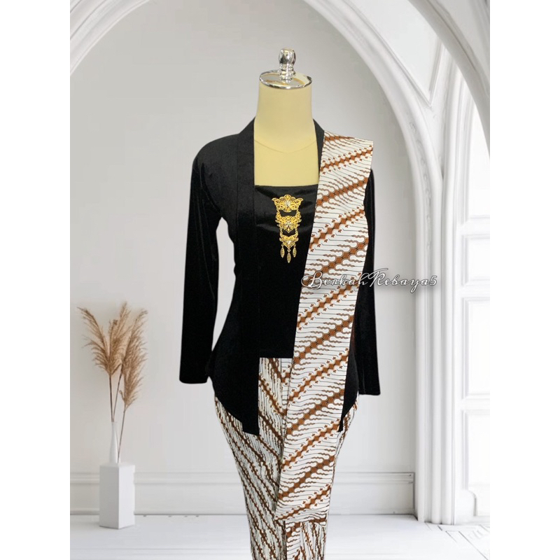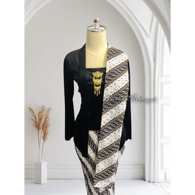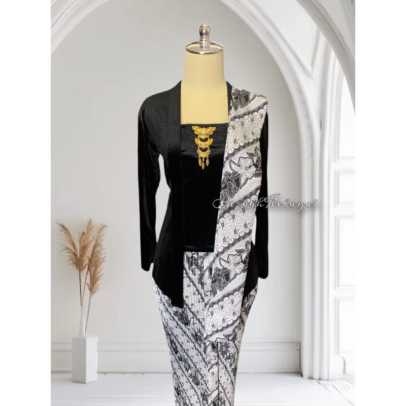 Setelan Kebaya Kutu Baru Bludru Warna Hitam / Kebaya + Selendang + Jarik Wiru Plisket
