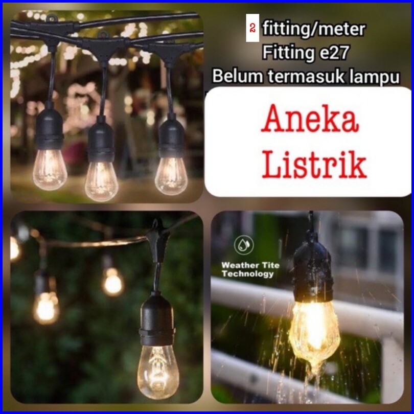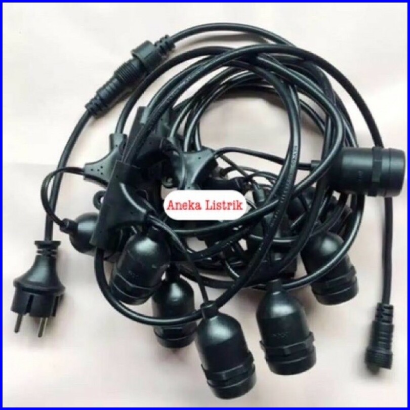 Kabel Fitting Lampu Gantung E27 5 Meter 10 Fitting Outdoor Taman Waterproof