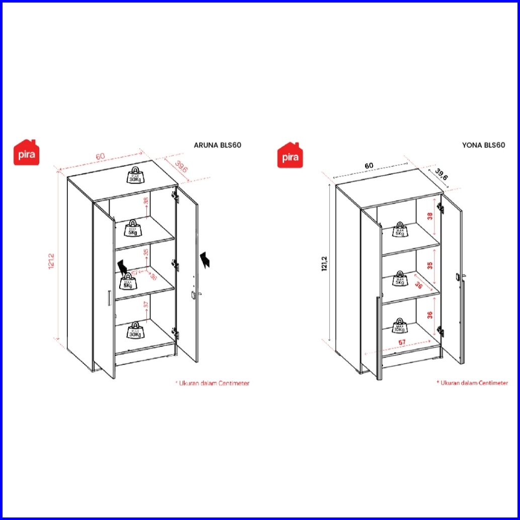 Pira Metropolis - Aruna Bls60 Lemari Pakaian Medium 2 Pintu Full Rak
