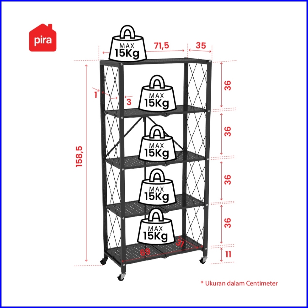 Pira - Flato Ava Msu Rak Dapur Lipat Serbaguna Rak Besi 3 4 5 Susun