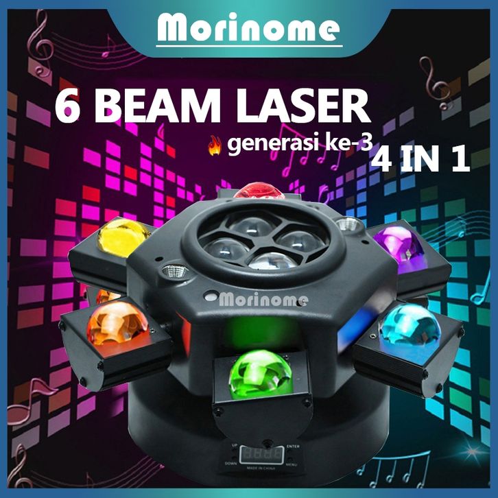 Moving Cyclone Laser Beam LED 4 in 1 Lampu Pang.g Laser Sixbee Lampu Disco DMX 512 RGB Bisa Ikut Sound Auto