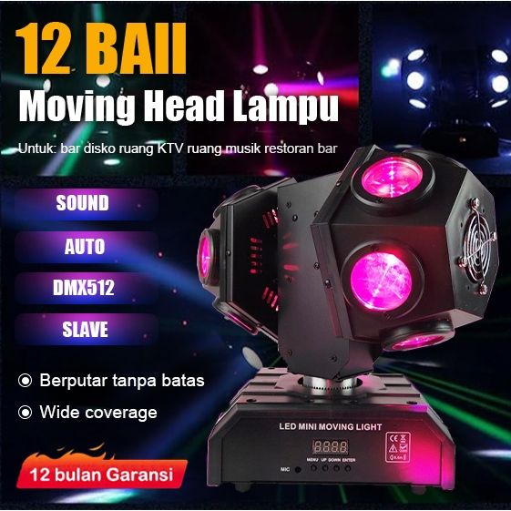 Moving head Beam LED 12.10watt Lighting Pang.g Sorot Putar Beam RGBW Lampu Disko putar DMX 512 Bisa ikut Sound