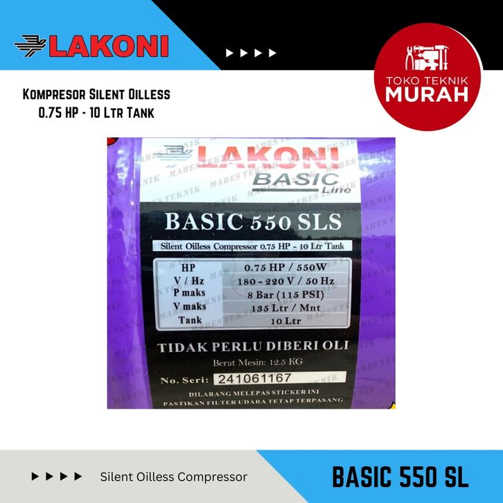 KOMPRESOR OILESS LAKONI BASIC 550 SLS SERIES 0,75HP / KOMPRESOR SILENT LAKONI 550 SLS 550 WATT