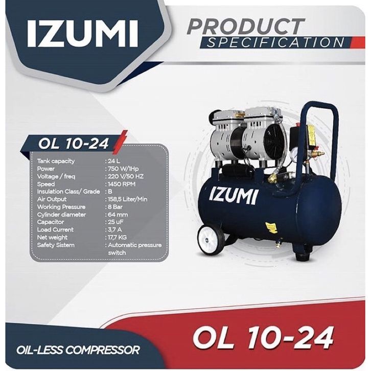 Kompresor Udara Oilless Izumi OL 1024 1HP 24Liter