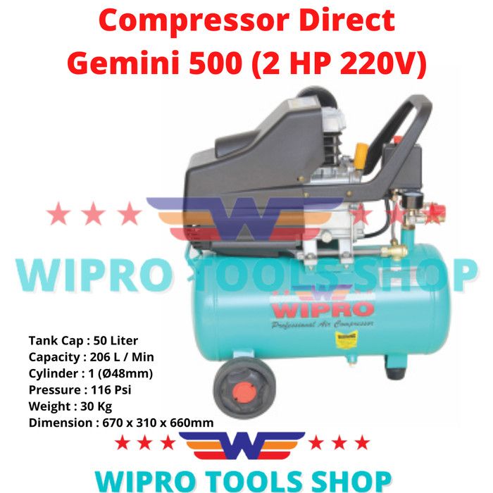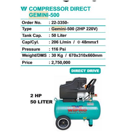 WIPRO GEMINI 500 KOMPRESOR 2 HP 50 LITER PAKAI OLIE HEAVY DUTY COMPRESSOR DIRECT DRIVE