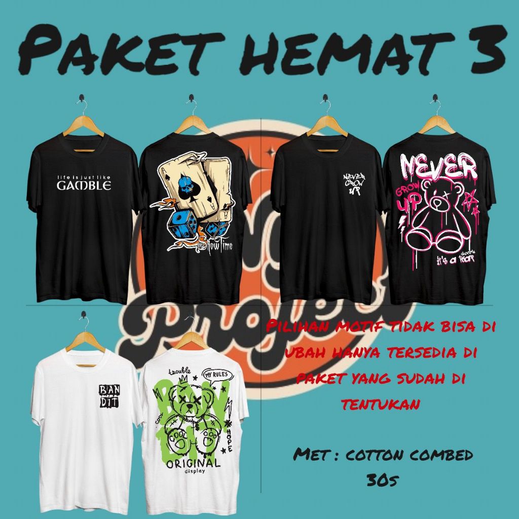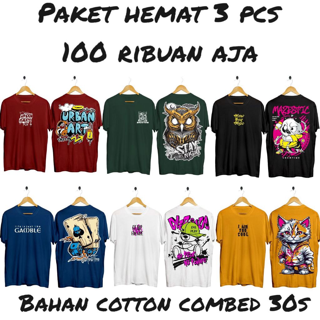 BAJU KAOS PAKET HEMAT 3PCS 100RIBUAN / KAOS MOTIF TERBARU / KAOS DISTRO KEKINIAN
