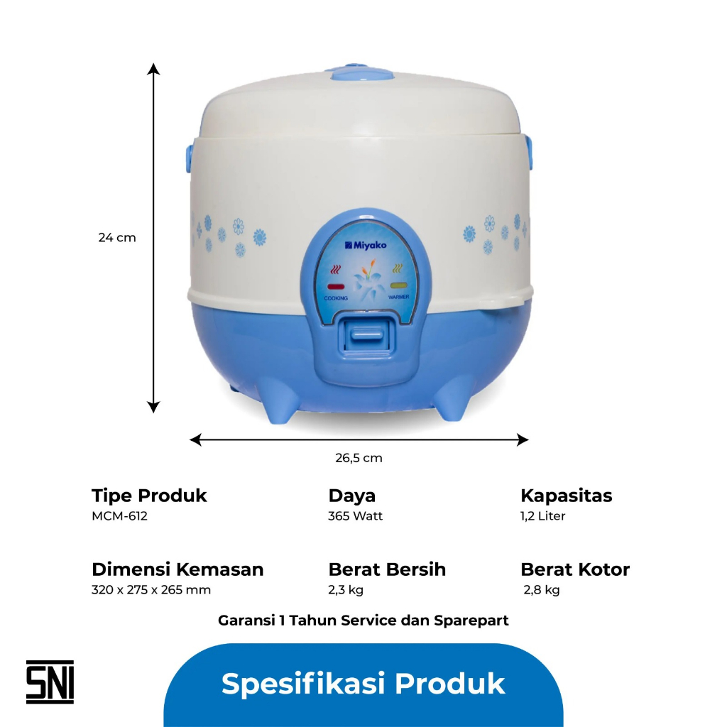 NEW ORIGINAL Magic Com Miyako MCM612 Rice Cooker3 in 1 - Magicom Warmer Plus 1.2 liter MCM 612