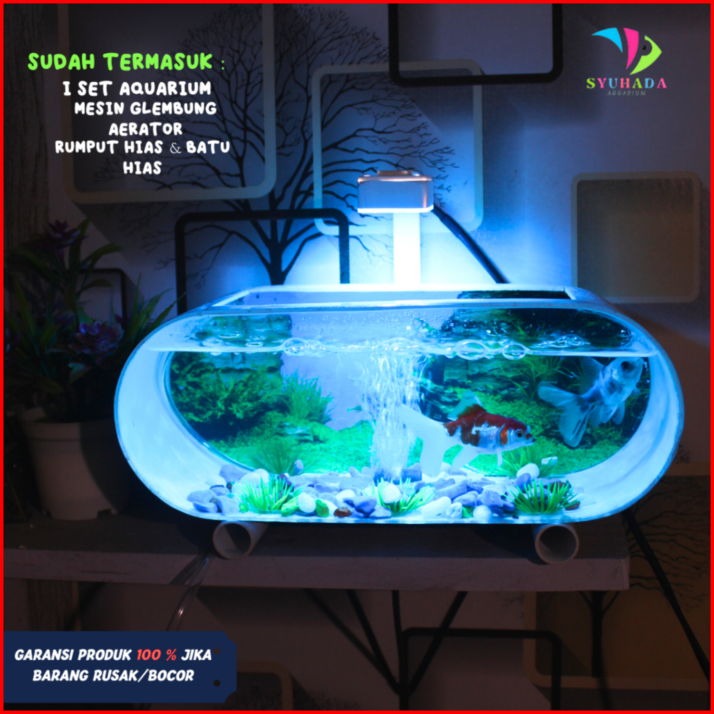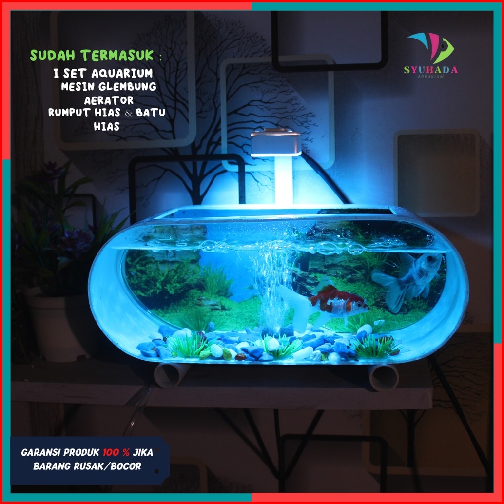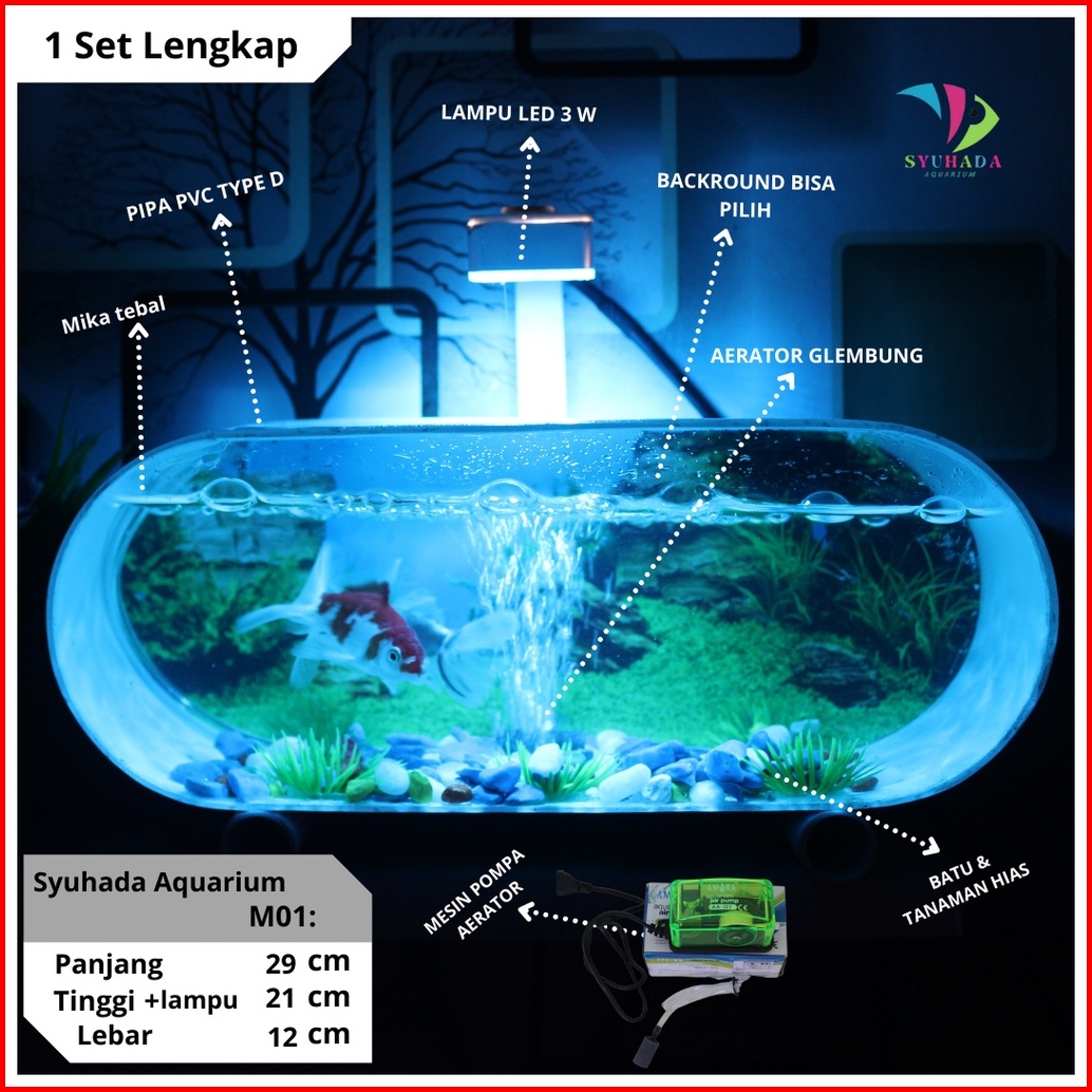 1 Set Aquarium Mini Pvc Plus Pompa Aerator Dan Lampu Led Akuarium Cupang Guppy Dekorasi Aquarium Minimalis