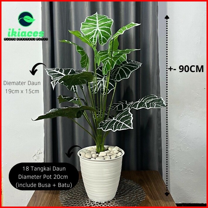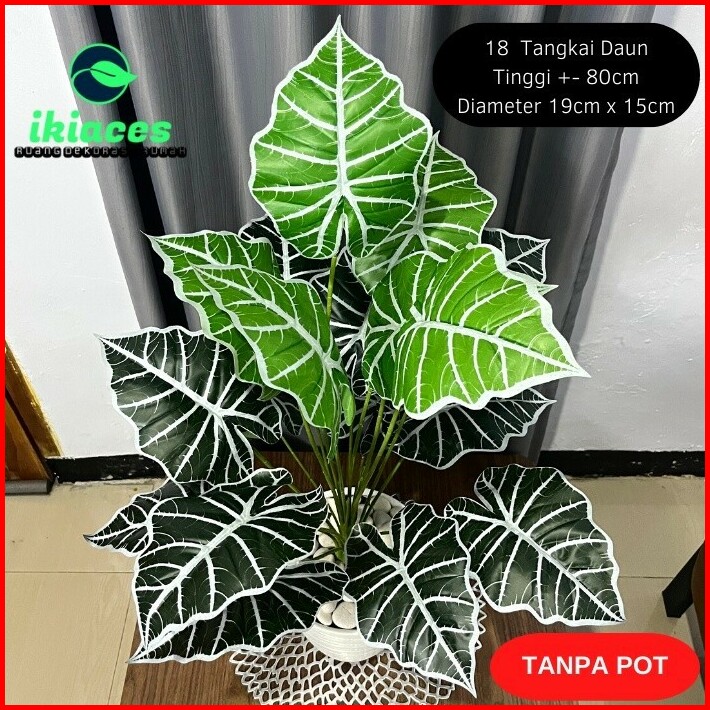 Daun Aglonema Artificial Daun Keladi Plastik Pot Bunga Hias Artifisial Daun Keladi Hias Dekorasi Pohon Plastik