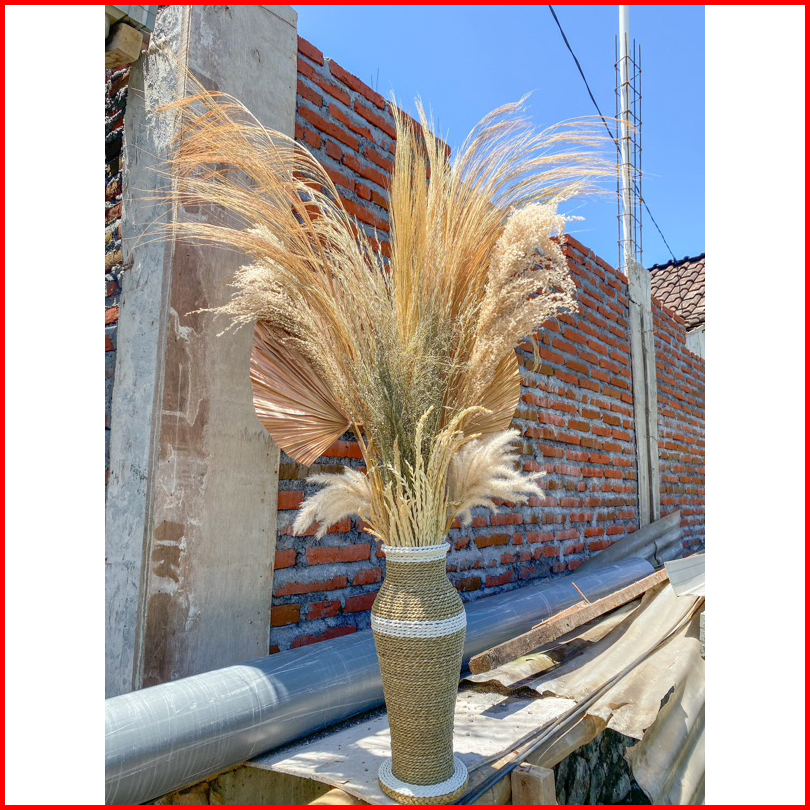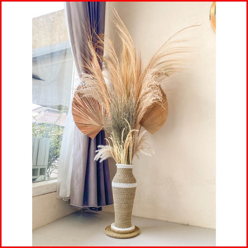 Paket Lengkap Bunga Kering Pot Vas Guci 35cm Palem Kering Pampas Rayung Ilalang Dekorasi Rustic Dekorasi Aesthetic Hiasa
