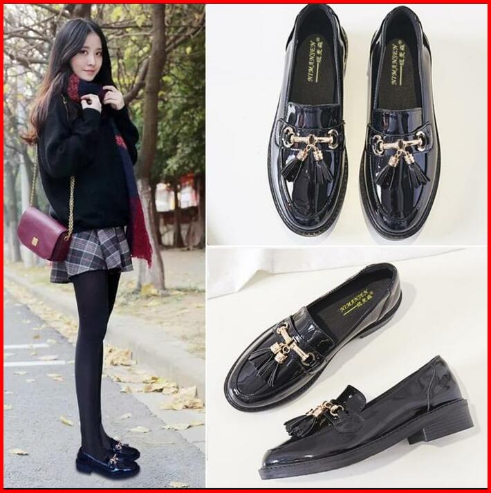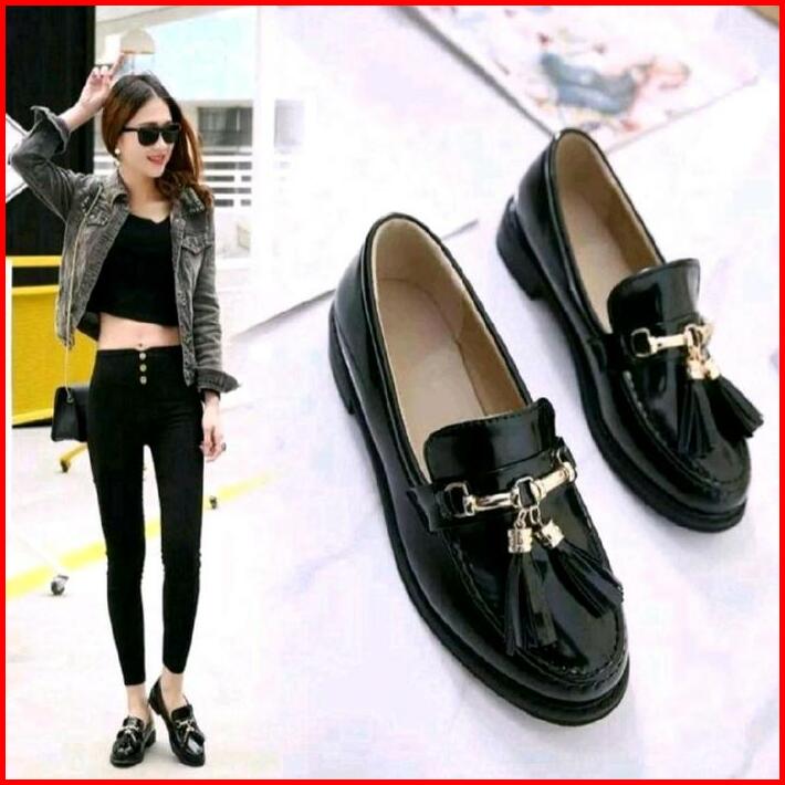 Sepatu Docmart Wanita Tasel Oxford Kulit Hitam Terbaru Kekinian Flatshoes Cewek Korea Viral Shoes Flat Kerja Kasual Pere