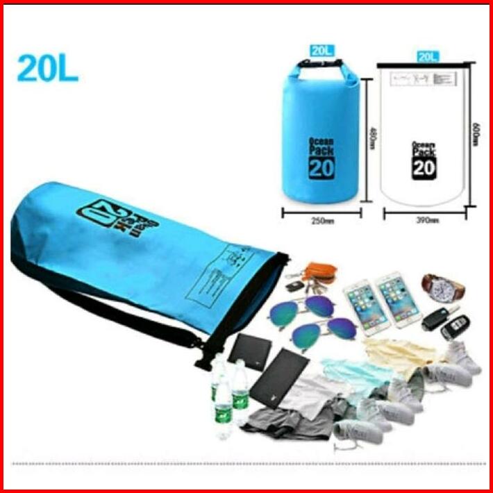 Dry Bag 20l 2 Strap Ransel Water Proof Bag Tas Anti Air Renang Pantai