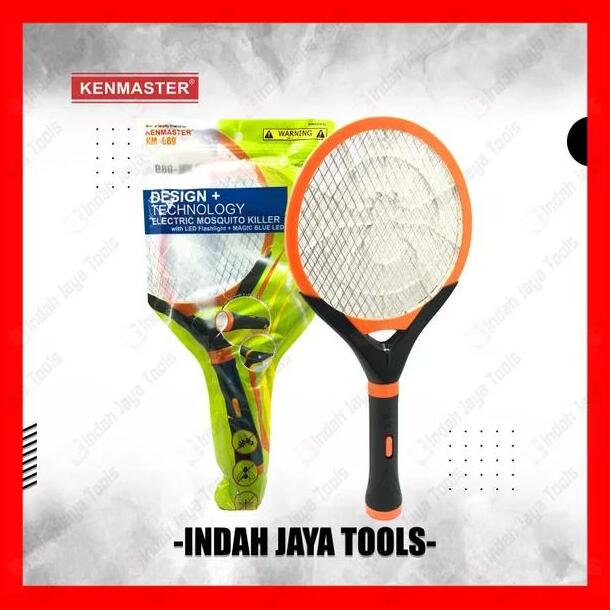 Raket Nyamuk Kenmaster Tahan Banting Lampu Senter Led Cas Charge