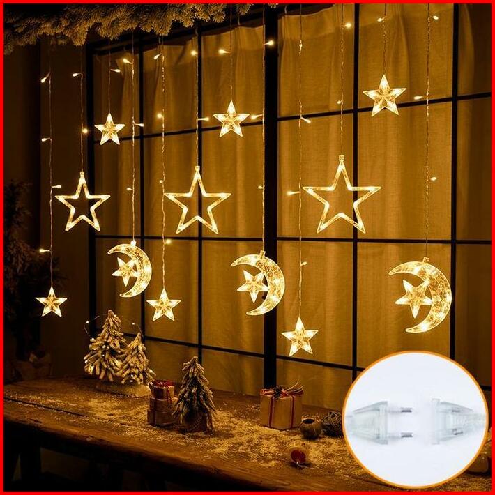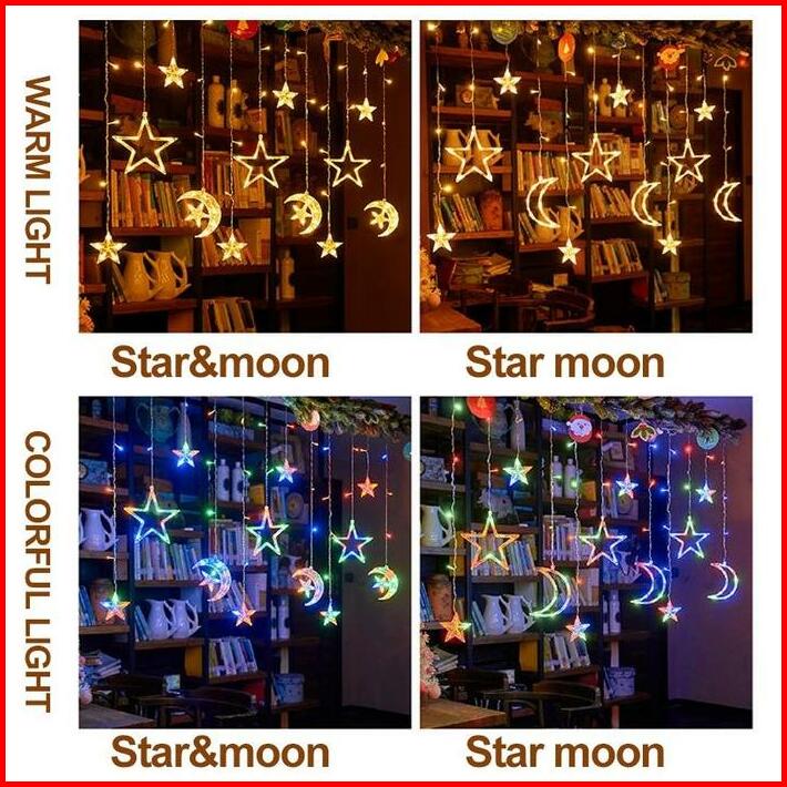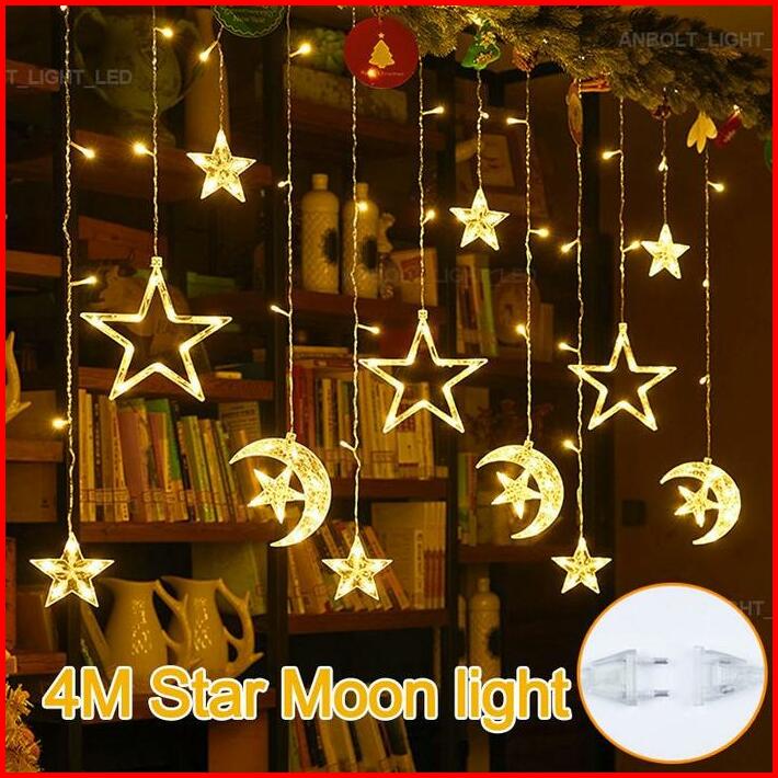Anbolt 2025 Lampu Ramadhan 4 Meter Lampu Hias Lampu Kelap Kelip Lampu Tirai Bintang Bulan Waterproof Lampu Kamar Aesthet