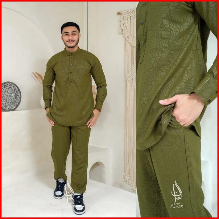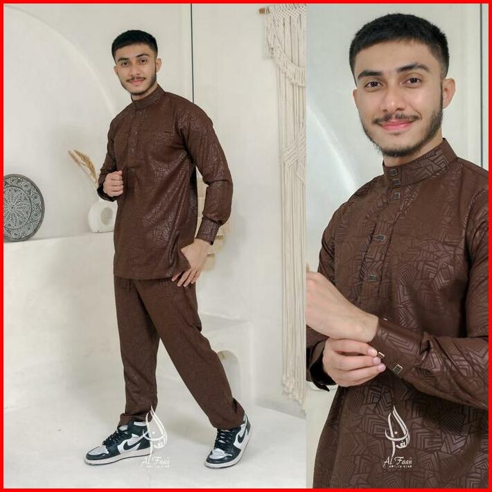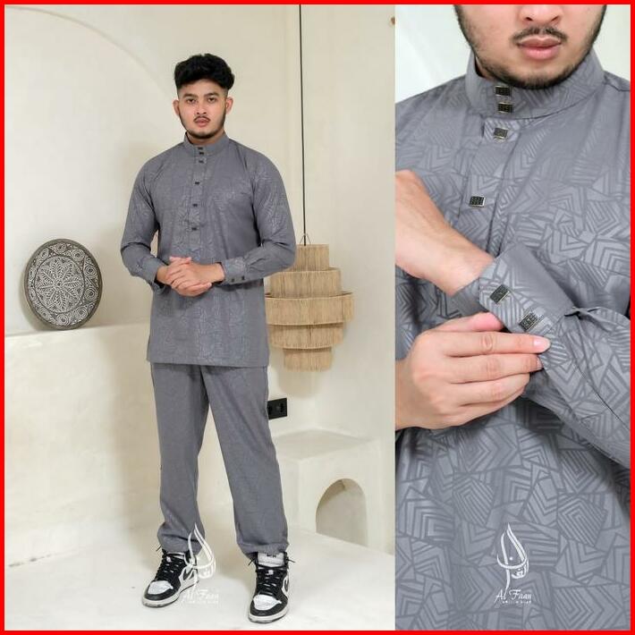 Baju Setelan Koko Melayu Slimfit Gamis Setelan Pakistan Alzan Motif Emboss Jubah Pria Muslim Jubah Alfaan Kancing Manset