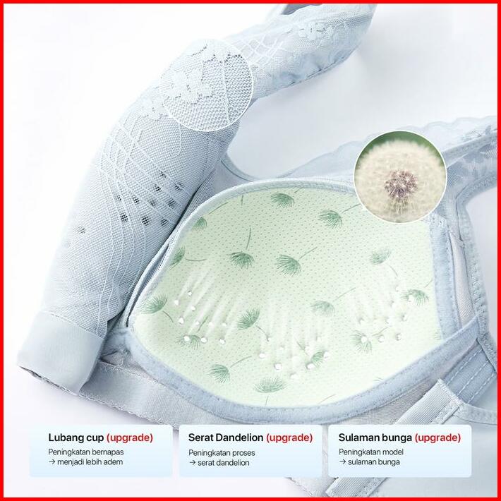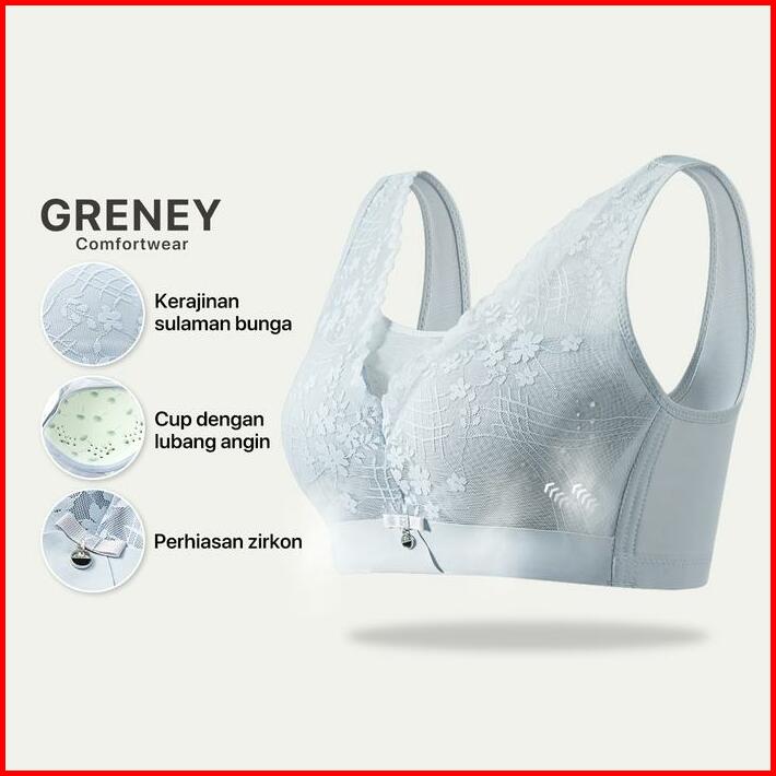 Greney-bra Cup Ventilasi Bigszie Generasi Ke-2 Beha Upgrade Versi Adem Sulaman Bunga Hiasan Zirkon Sangat Bernapas Bh