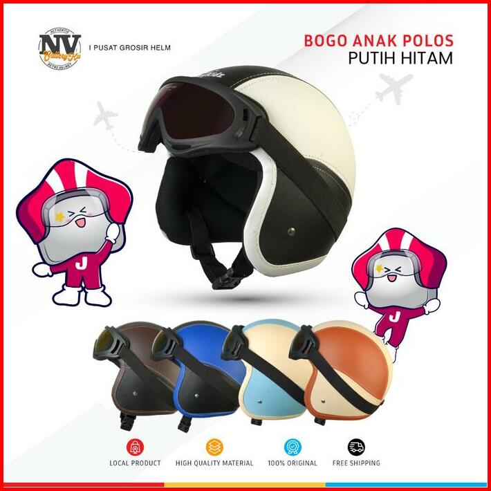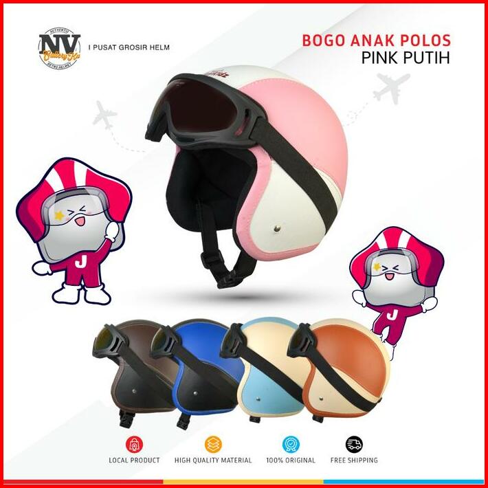 Helm Bogo Anak Pororo Retro Kacamata Usia 2 3 4 5 6 7 Tahun Perempuan Laki Warna Imut Polos Cream Pastel Cembung Kaca Mo