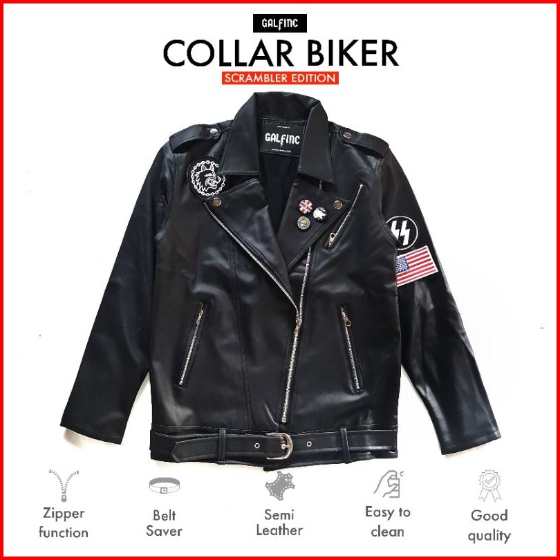 Galfinc Leather Jaket Kulit Pria Collar Biker Scrambler Edition