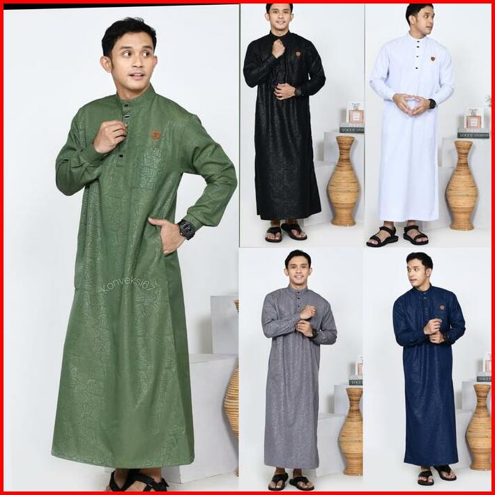 Jubah Manset Etnik Haramain Gamis Laki Laki Pria Dewasa Jubah Embos Premium Muslim Remaja