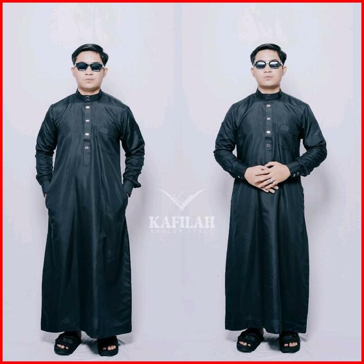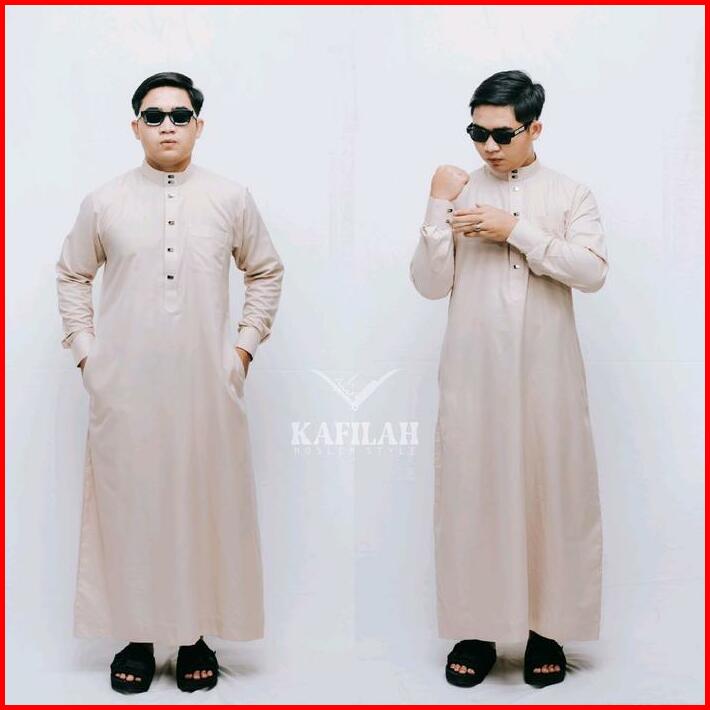 Jubah Pria Muslim Katun Reguler Dewasa Lengan Panjang Manset Kancing Snap Gamis Pria Dewasa Polos Kerah Kotak Model Hara