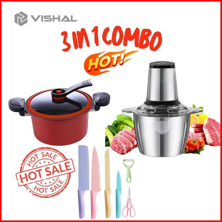 Vishal Combo 3in1 Panci Presto Blender Penggiling Daging Stainless Pisau Set 6in1