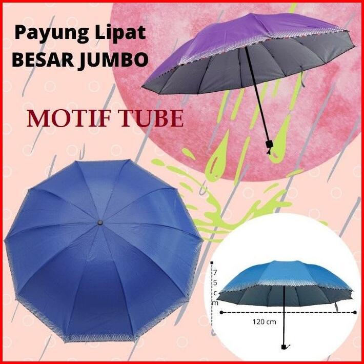 Payung Lipat 3 Super Jumbo Besar 10 R Jari Motif Tube Nf 351