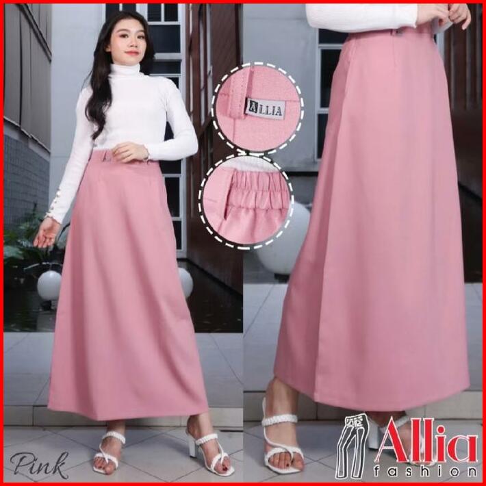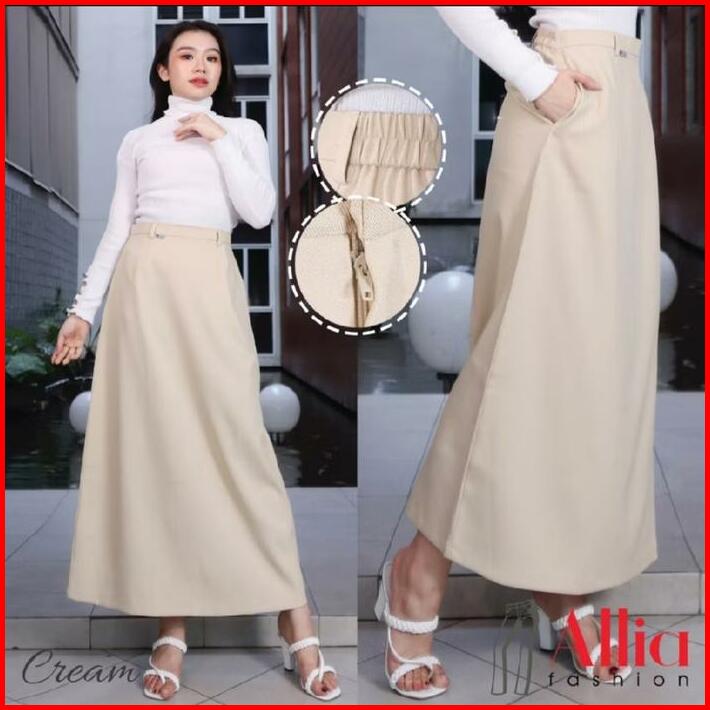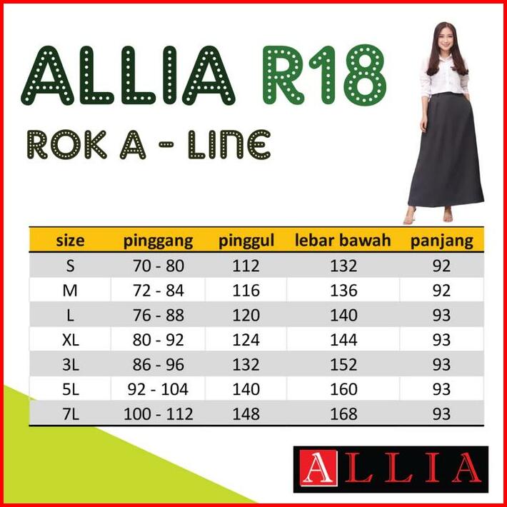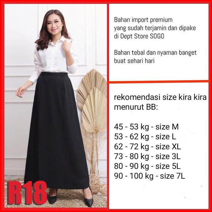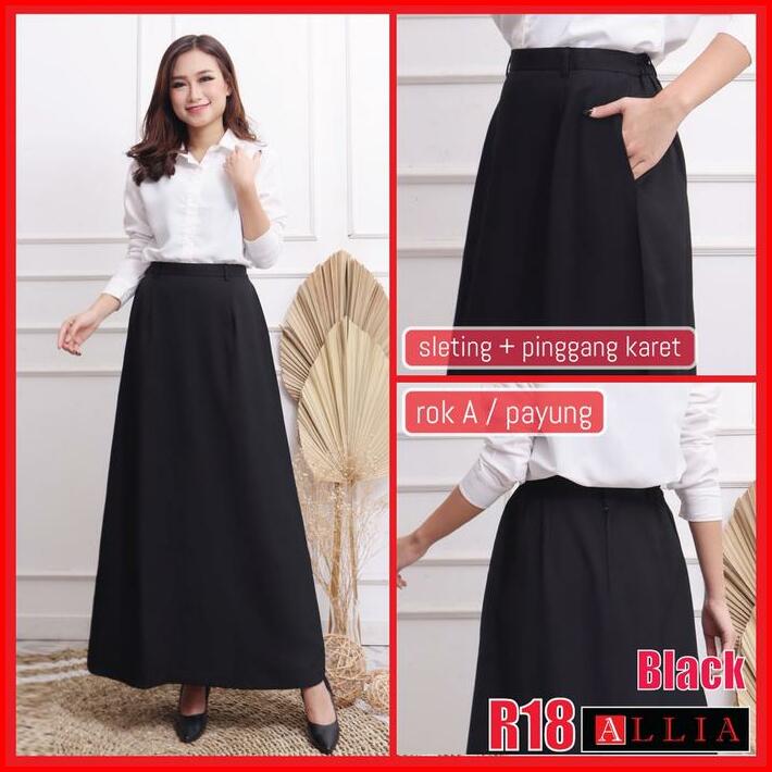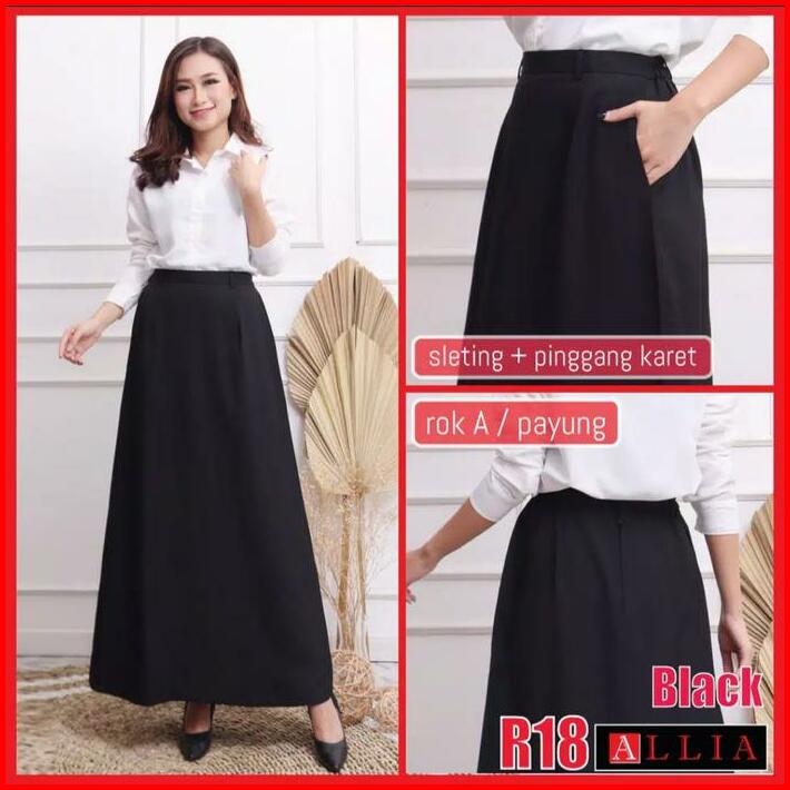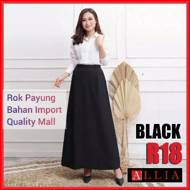 Rok Kerja Wanita Panjang Allia R18 Black M-7l Rok Payung Jumbo