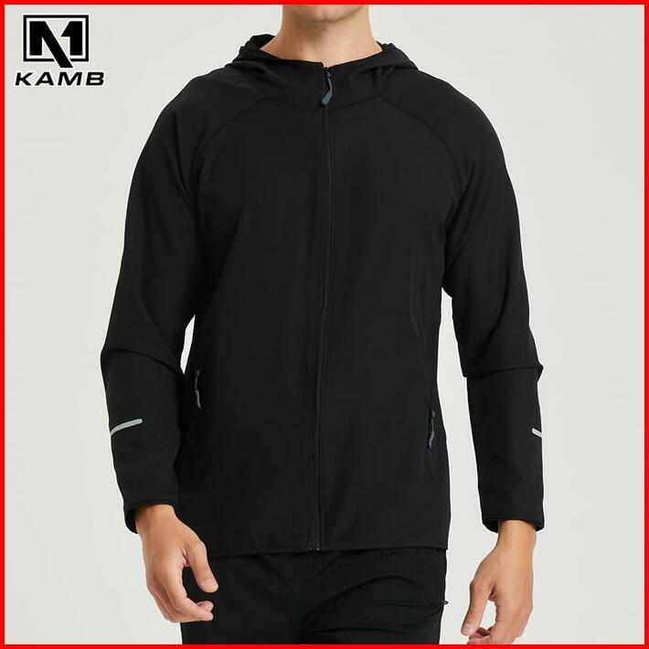 Kamb Parasut Jaket Windbreaker Pria Waterproof Zipper Hoodie