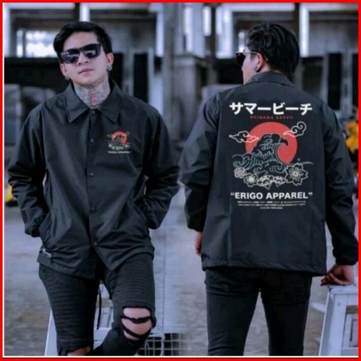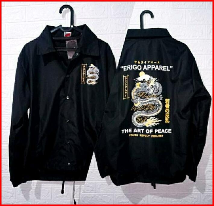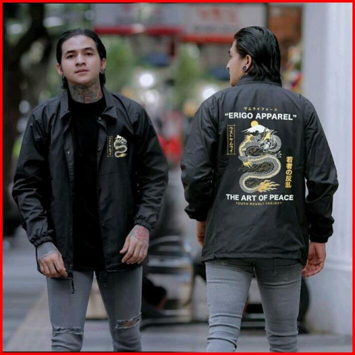 Jaket Coach Pria Erigo Naga Hitam Cj Murah Jaket Parasut Jaket Windbrekaers Hitam Slim-fitting