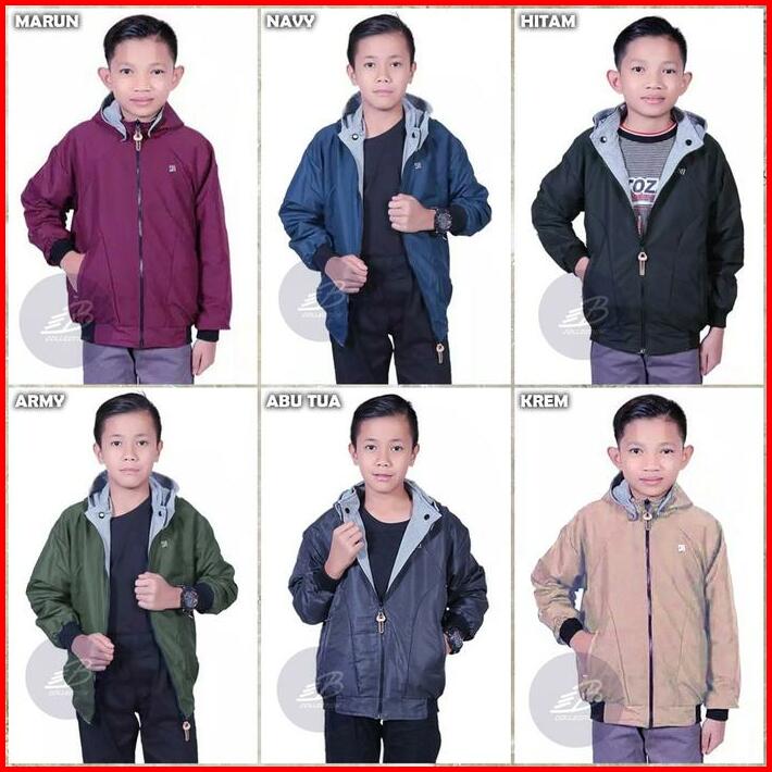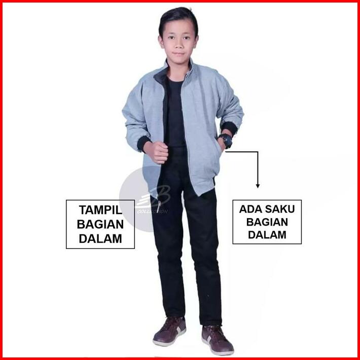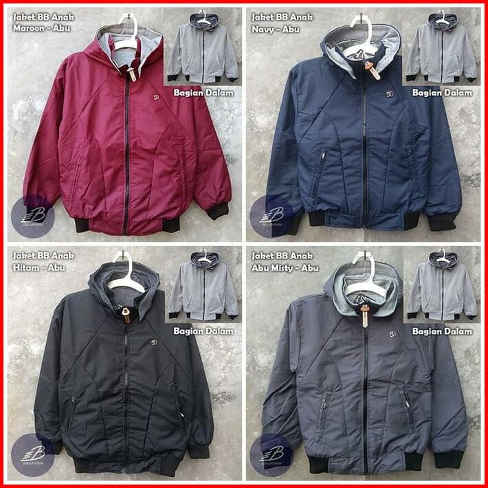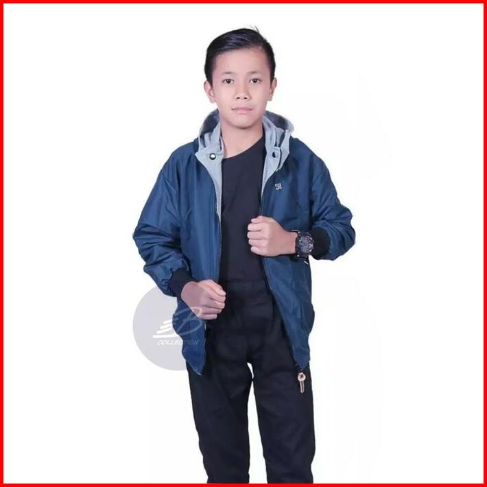 Jaket Dc Anak Bolak-balik Uk Tanggung Parasut Taslan Fleece Waterproof