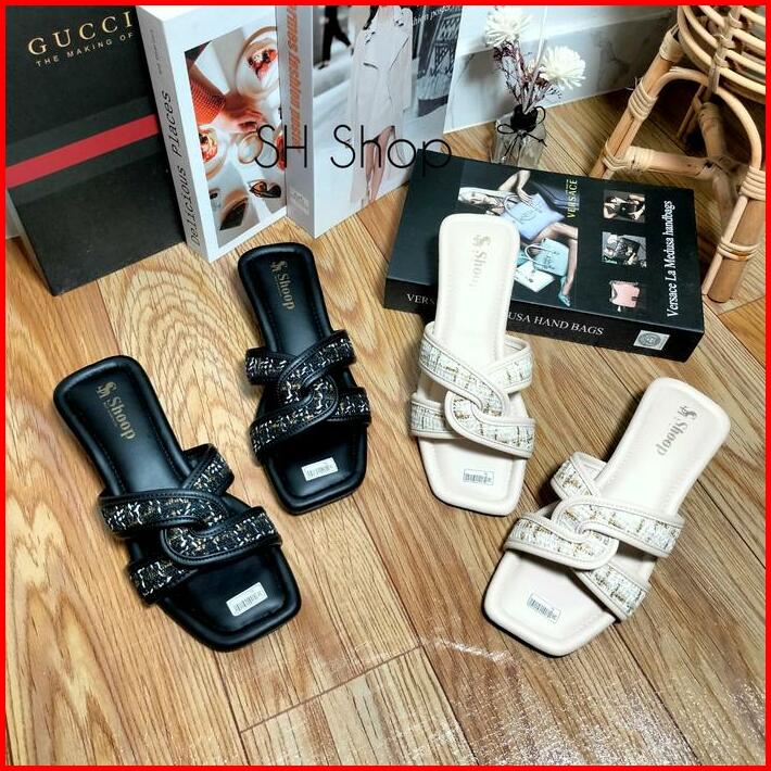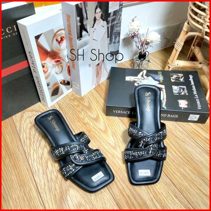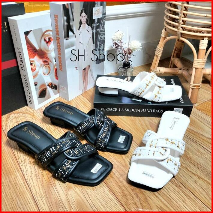 Sendal Heels Wanita Terbaru Motip Kain Lucu Model Trendy Kekinian Hak 3cm