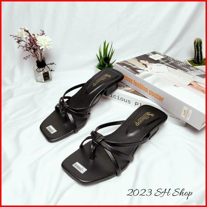 Sendal Wanita Sendal Jepit Kekinian Cantik Hitam Putih